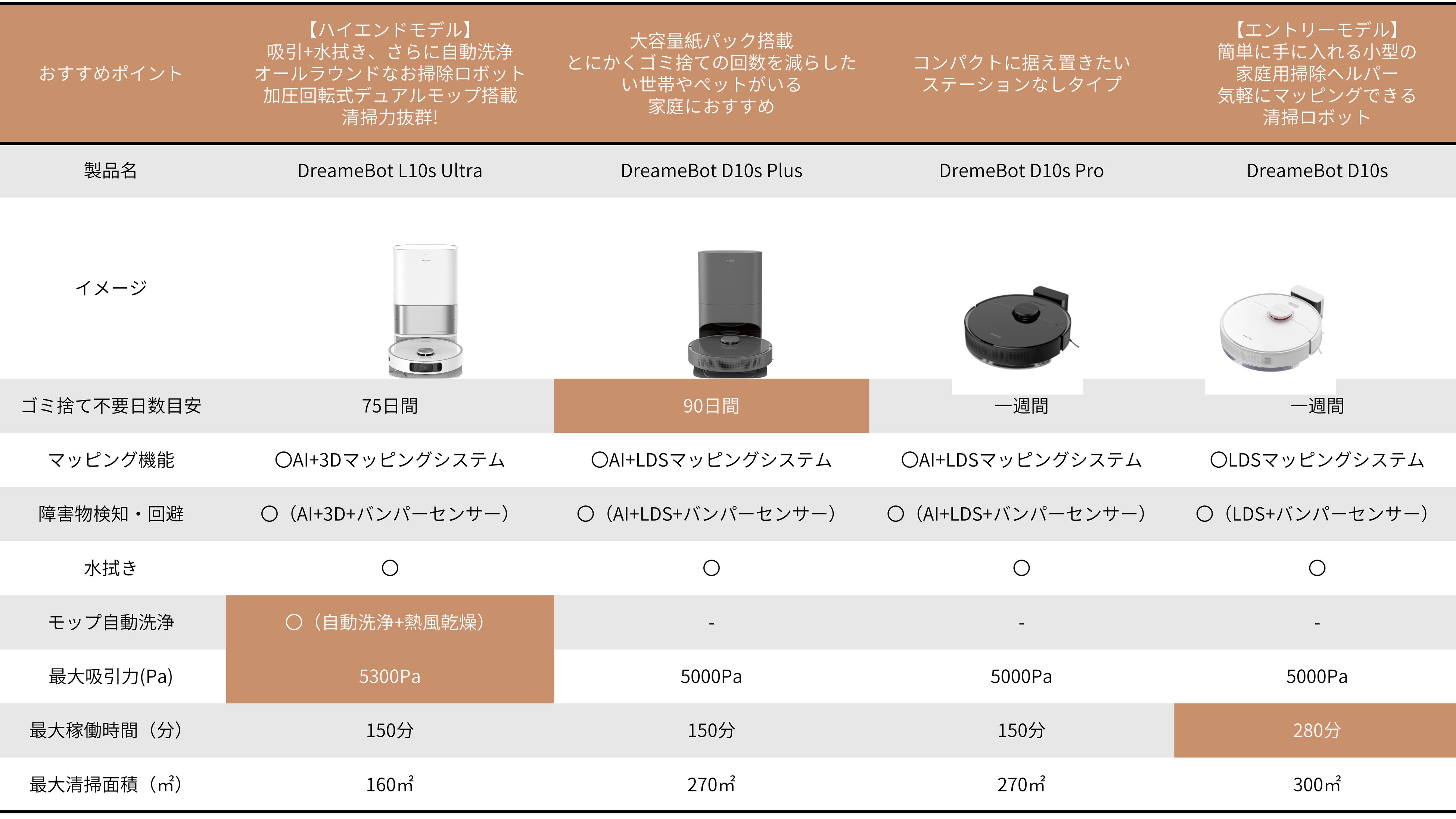 今回、日本市場向けにハイエンドロボット掃除機DreameBot L10s Ultraとフラッグシップ水拭き掃除機Dreame H12 Proを含むロボット掃除機4製品と水拭き掃除機2製品を発売することを決定しました。