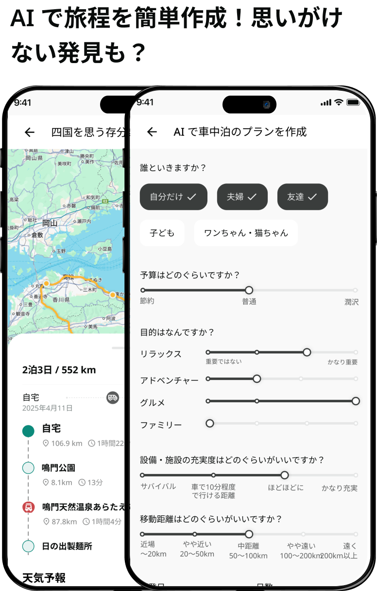 CAM TABI は、こうした課題を解決するために開発された車中泊専用のアプリです。