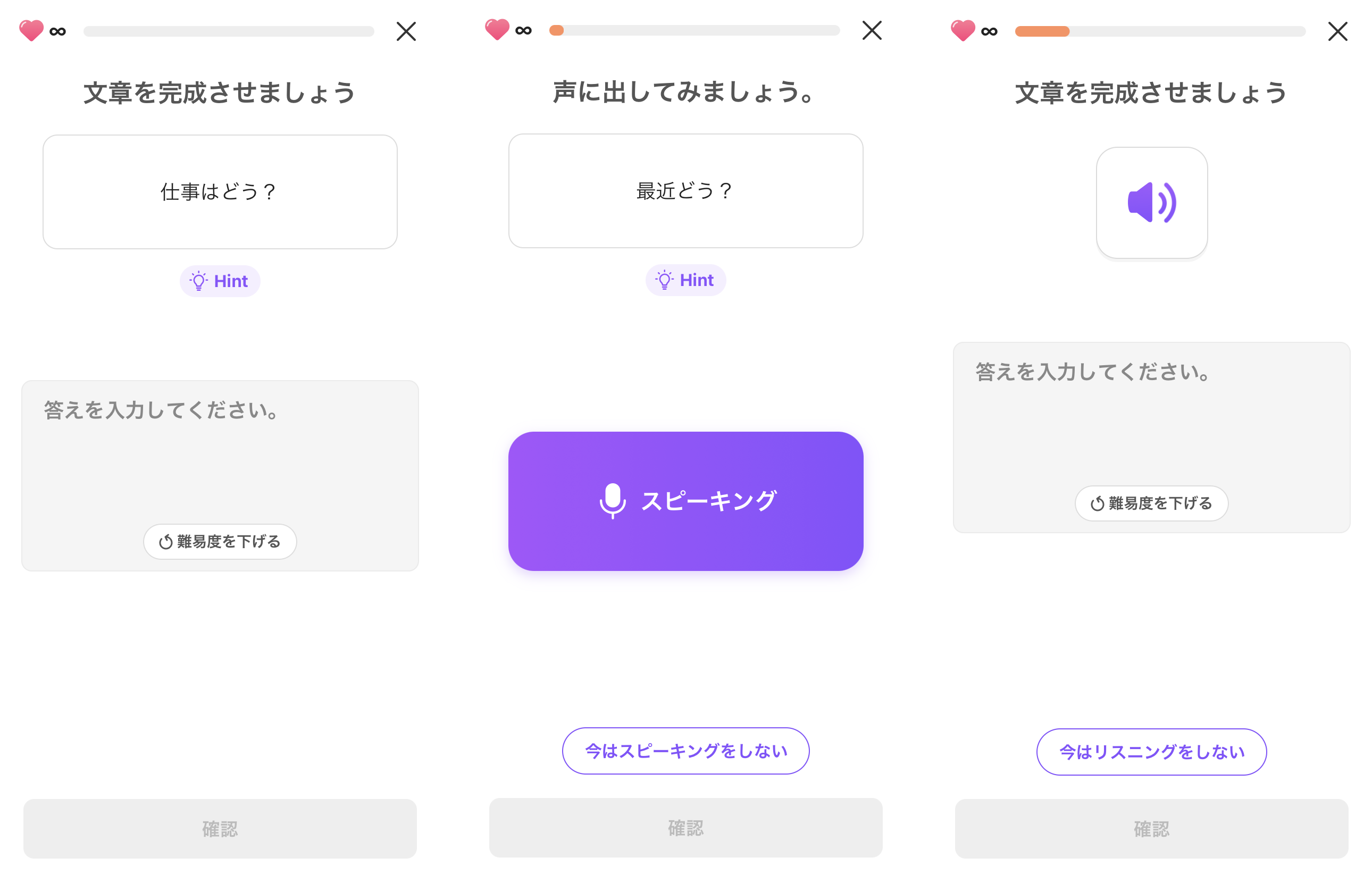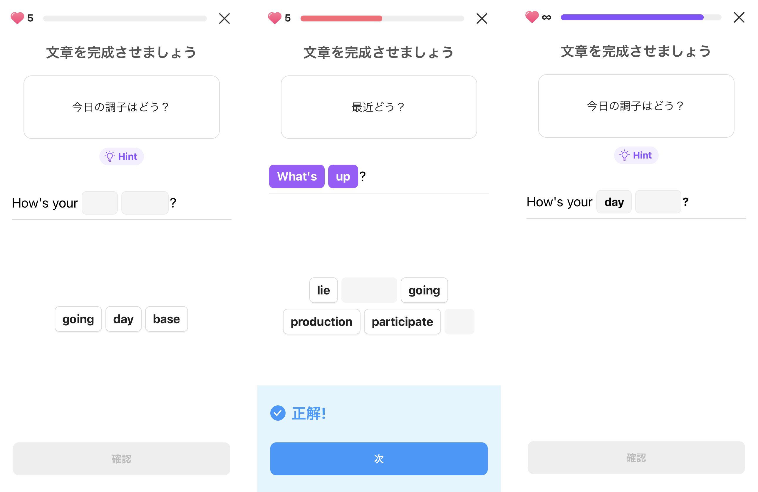 - 「復習クイズ」:応用問題や難易度を高めたクイズで徹底的に学習内容を完全定着