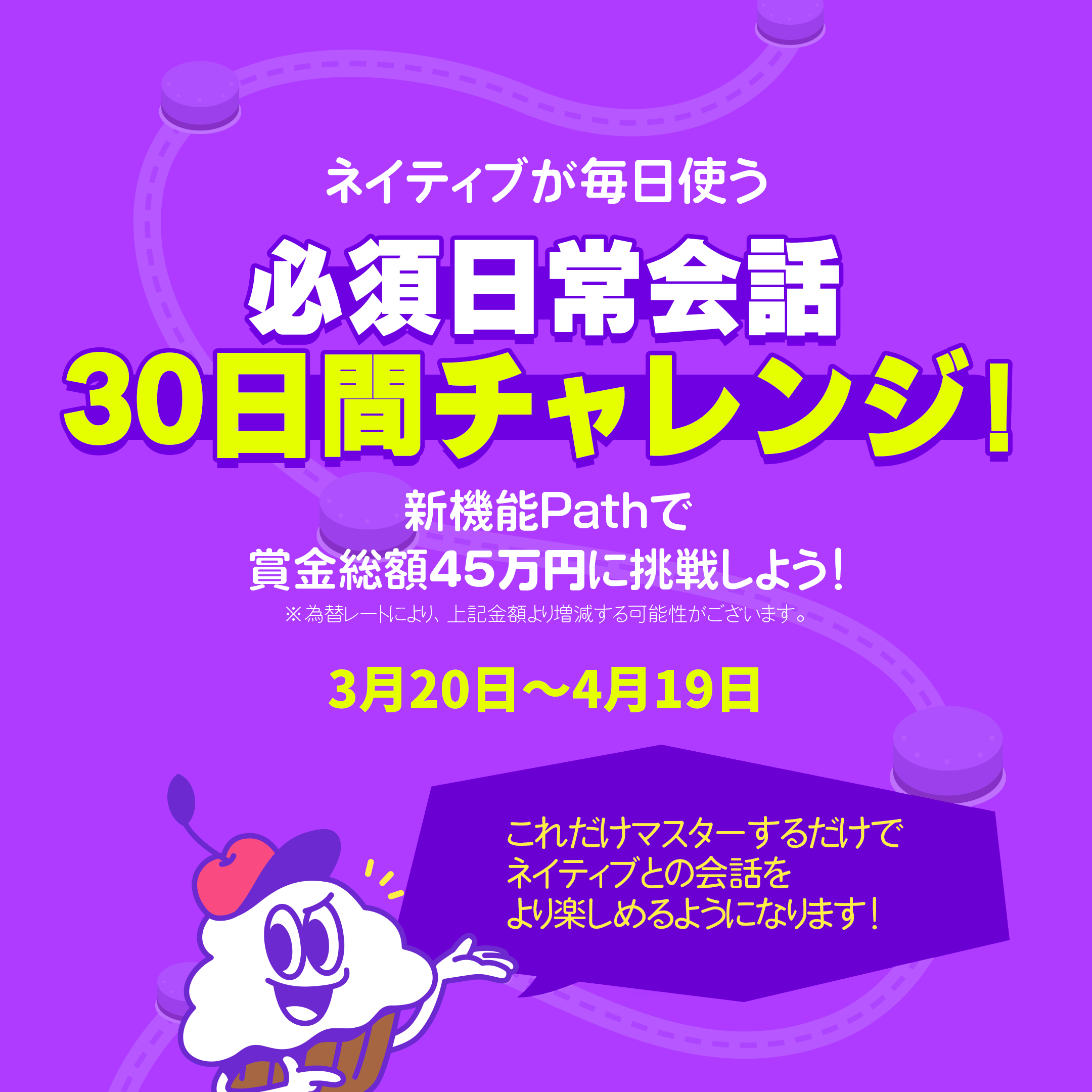 英語と韓国語学習の教育プラットフォームを提供する言語学習アプリ企業、Cake(読み:ケーク)が、2023年4月19日(水)まで、Cakeアプリの新機能「Path」のリリースを記念し、同機能を活用した「Path30日間チャレンジ」を開催する。