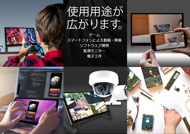 内容 : モニター本体、標準HDMI-miniHDMI ケーブル×1、Type C-USB Aケーブル×2、専用スタンド1セット、スタンド取付用ビス×2、小型シングルボードコンピュータ取付用ビス×4、日本語取扱説明書×1