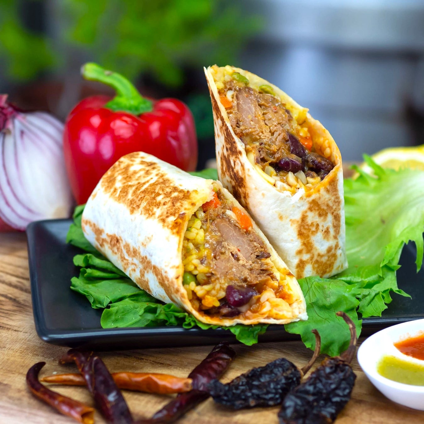メキシカンライス、チリコンカン、チーズ、そしてじっくり煮込んだお肉を小麦粉トルティーヤで包んだ定番のカルニタスブリトーやマトンを使用したブリトー、そしてベジタリアンブリトーなどをご用意。