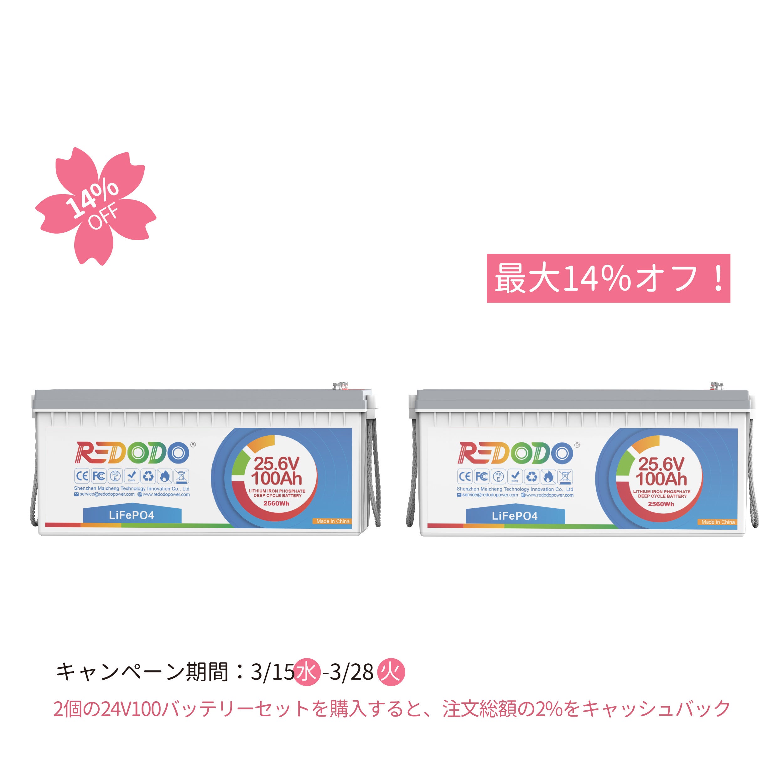 - URL: https://jp.redodopower.com/products/redodo-24v100ah-battery