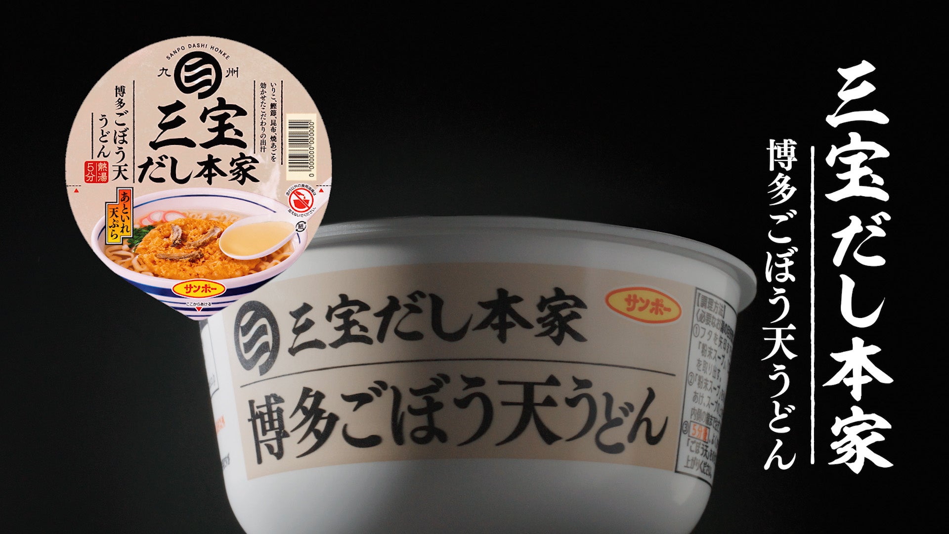 カップでこのだし、うまいっ!「三宝だし本家 博多ごぼう天うどん」新発売