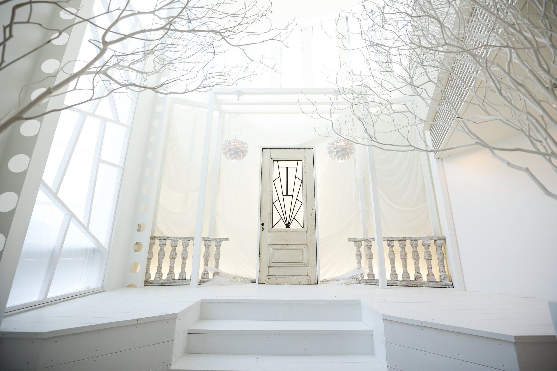 3連のアーチ窓と5つのクラシックシャンデリアが圧巻のアンティークスタジオは光の加減で明暗使い分けた撮影ができます。
