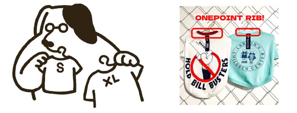 アメリカ西海岸を仕入れ元の中心としたヴィンテージウェアから、リメイクのベースとなるウェアを選びます。その後仕上げサイズとリブのカラー、タグに刺繍する愛犬のお名前のフォントと糸色を指定し、世界で1着のウェアを作ります。オーダーから約1ヶ月、ご自宅への配送もしくは店頭での受け取りを楽しみにお待ちください。