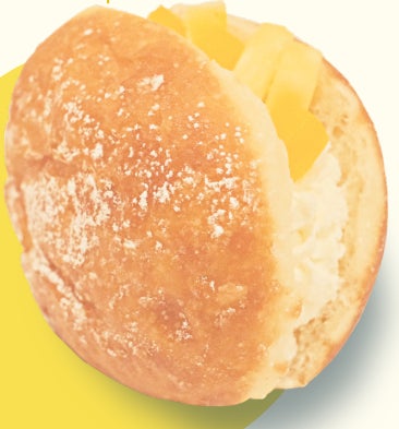 揚げたての沖ドラのなかには、ひんやり冷たい北海道産アイスクリームとゴールドバレルがたっぷり。