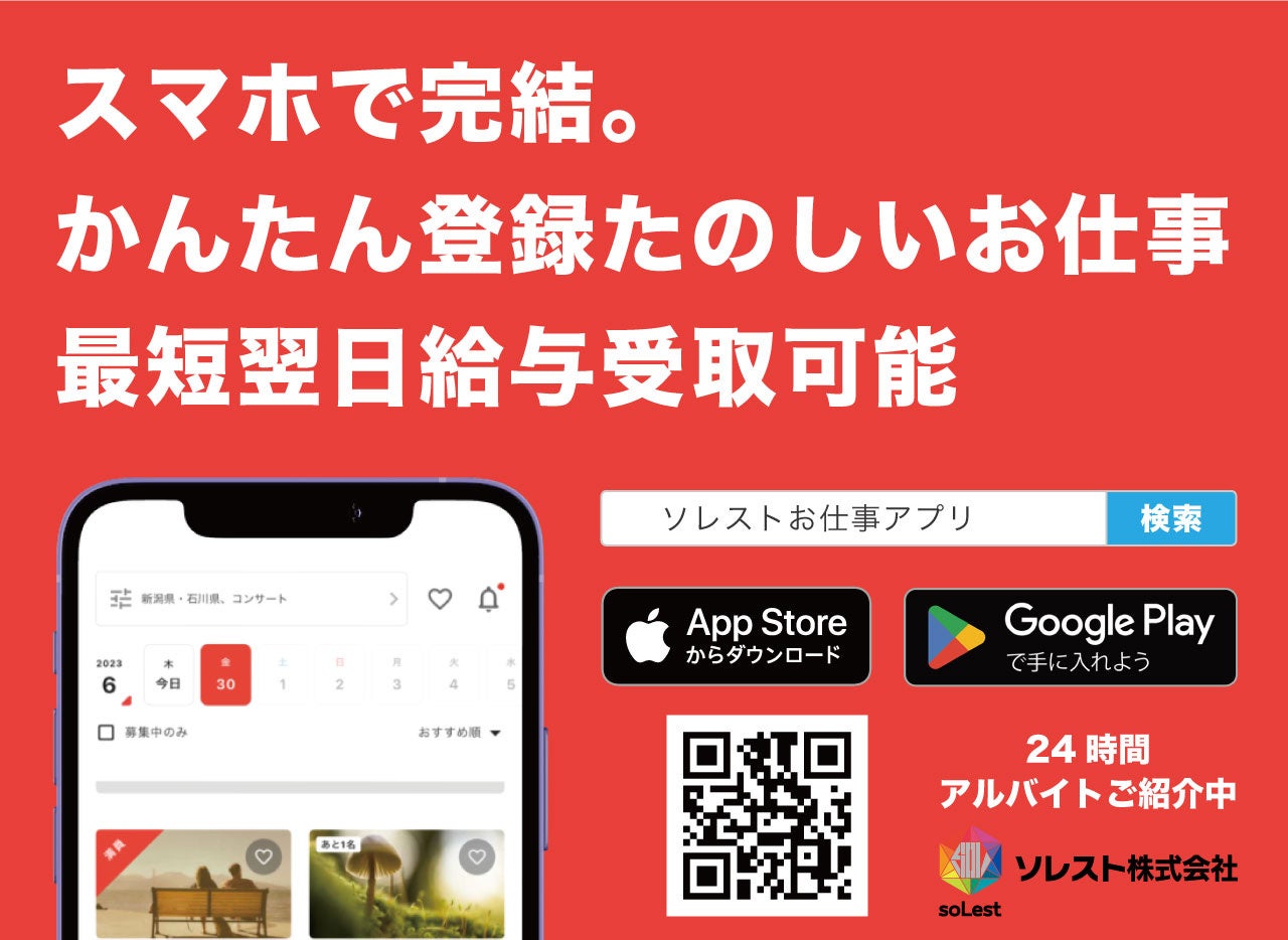 各ストアから専用アプリ「ソレスト仕事アプリ(iPhone版、Android版)」をダウンロードしてください。