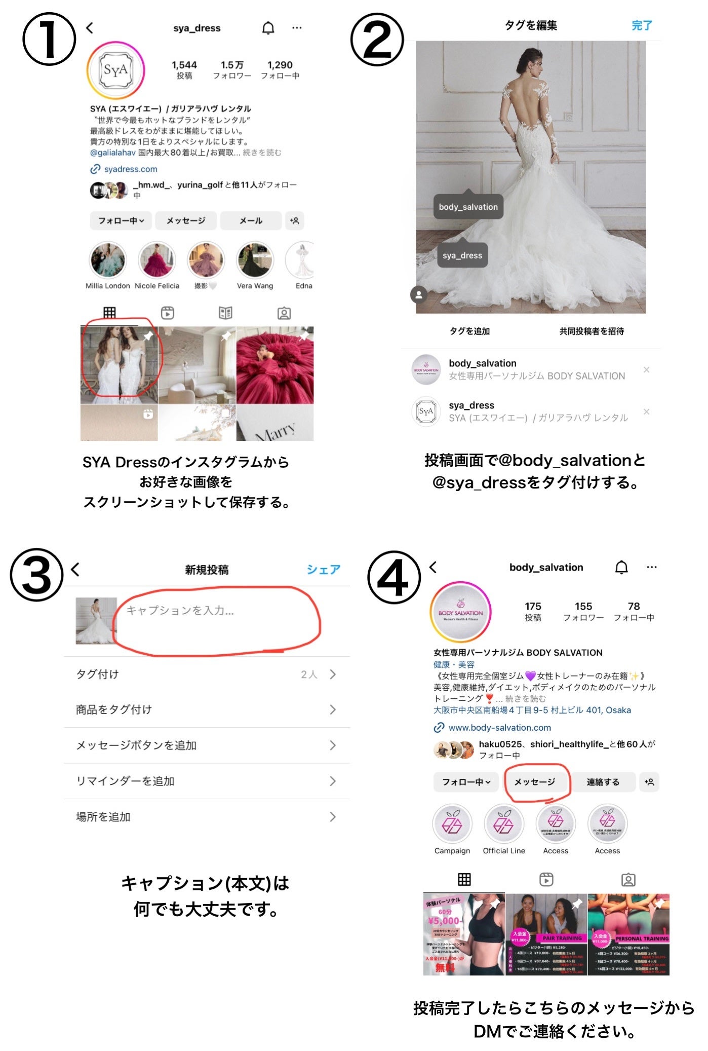 ◎その際に@body_salvation と @sya_dress をタグ付けして頂ければ、キャプションは何でも大丈夫です。