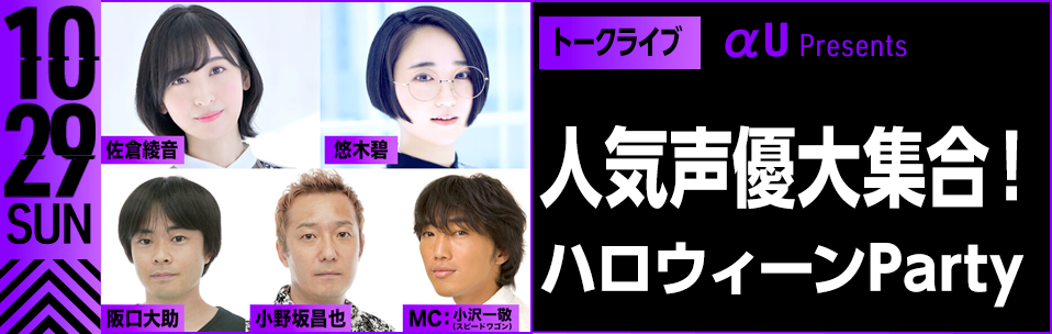 大人気声優の小野坂昌也、悠木碧、佐倉綾音、阪口大助がスピードワゴン・小沢一敬とハロウィーンパーティーを開催!