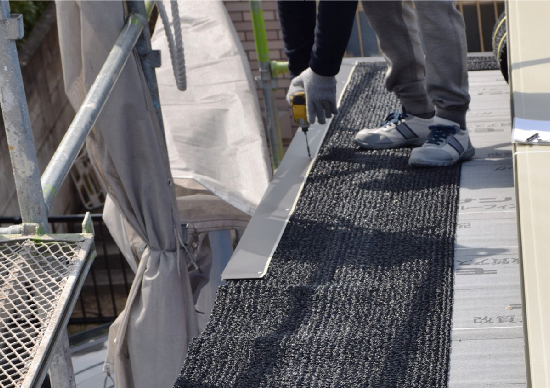 - 通気層を確保するメッシュマットが、大事な住まいの屋根を守る