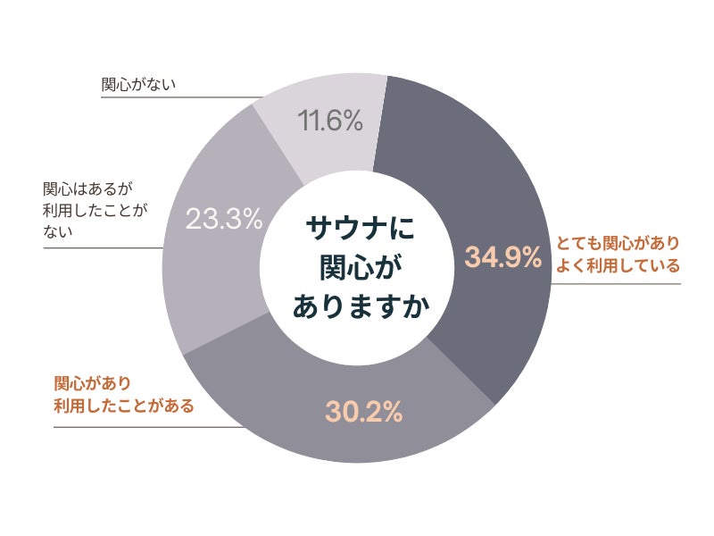 近年の日本でも新鮮なエンタメとして、若者や女性の間でもサウナ人気が再燃しています。20代〜60代男女を対象に実施したサウナ利用に関するアンケートでは、88.4%が「サウナに関心がある」とし、65.1%が「サウナ利用経験あり」と回答。サウナ利用が「月に数回以上」と答えた数は48.6%と全体の半数近くを占め、サウナへの関心が高まっていることが伺えます。