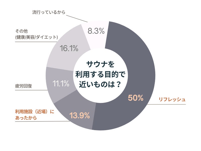 また、リフレッシュ効果以外のサウナ利用目的には「利用施設(近場)にあったから」が13.9%と、環境さえ許せば利用が見込めるとも言えます。現在、都心部ではサウナ施設の混雑が課題となる一方、郊外においては施設そのものの不足から利用者が集まらないなど、需要と供給のバランスが取れていない現状です。