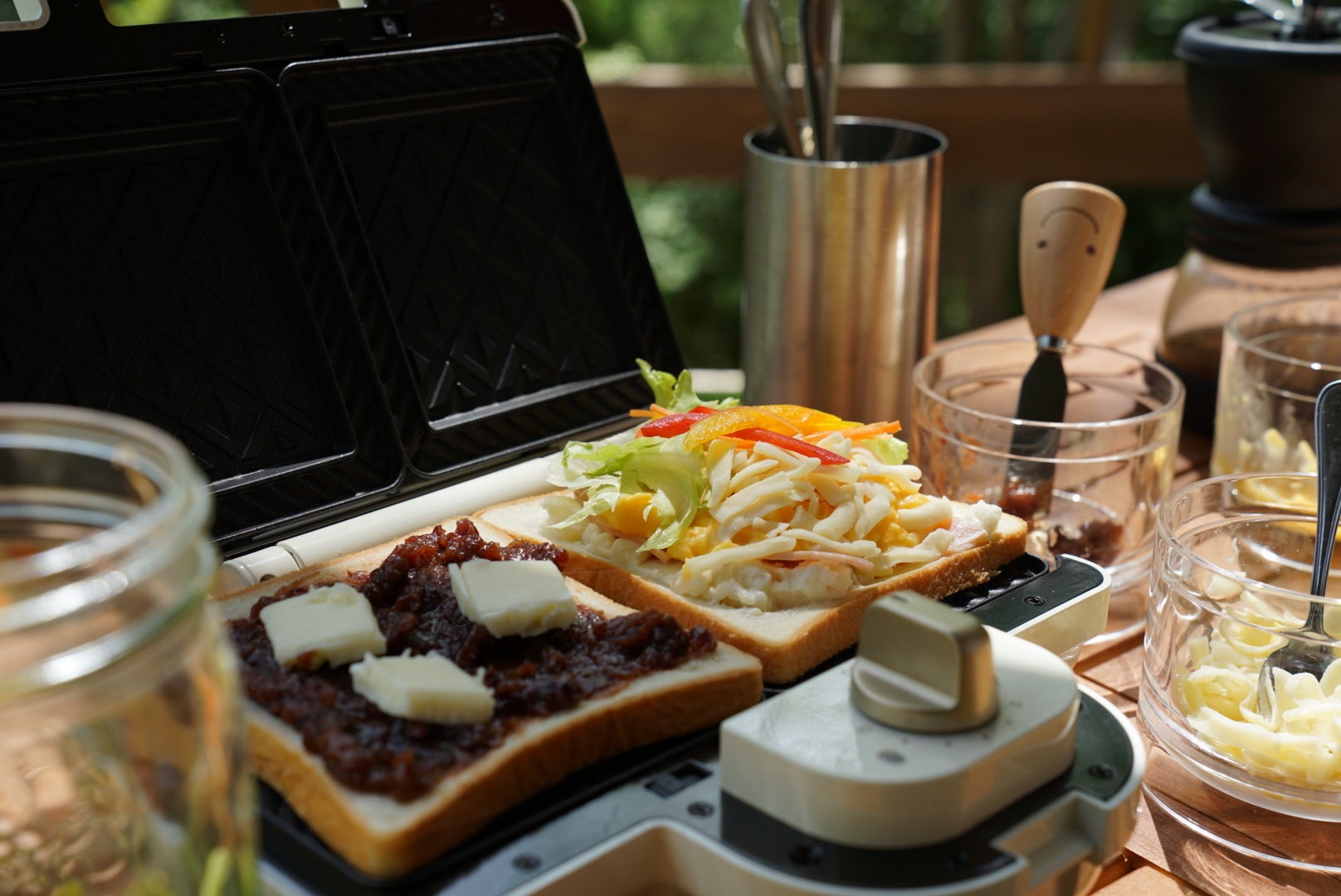 朝食にはホットサンドメーカーを使用して自分で作るオリジナルホットサンド。
