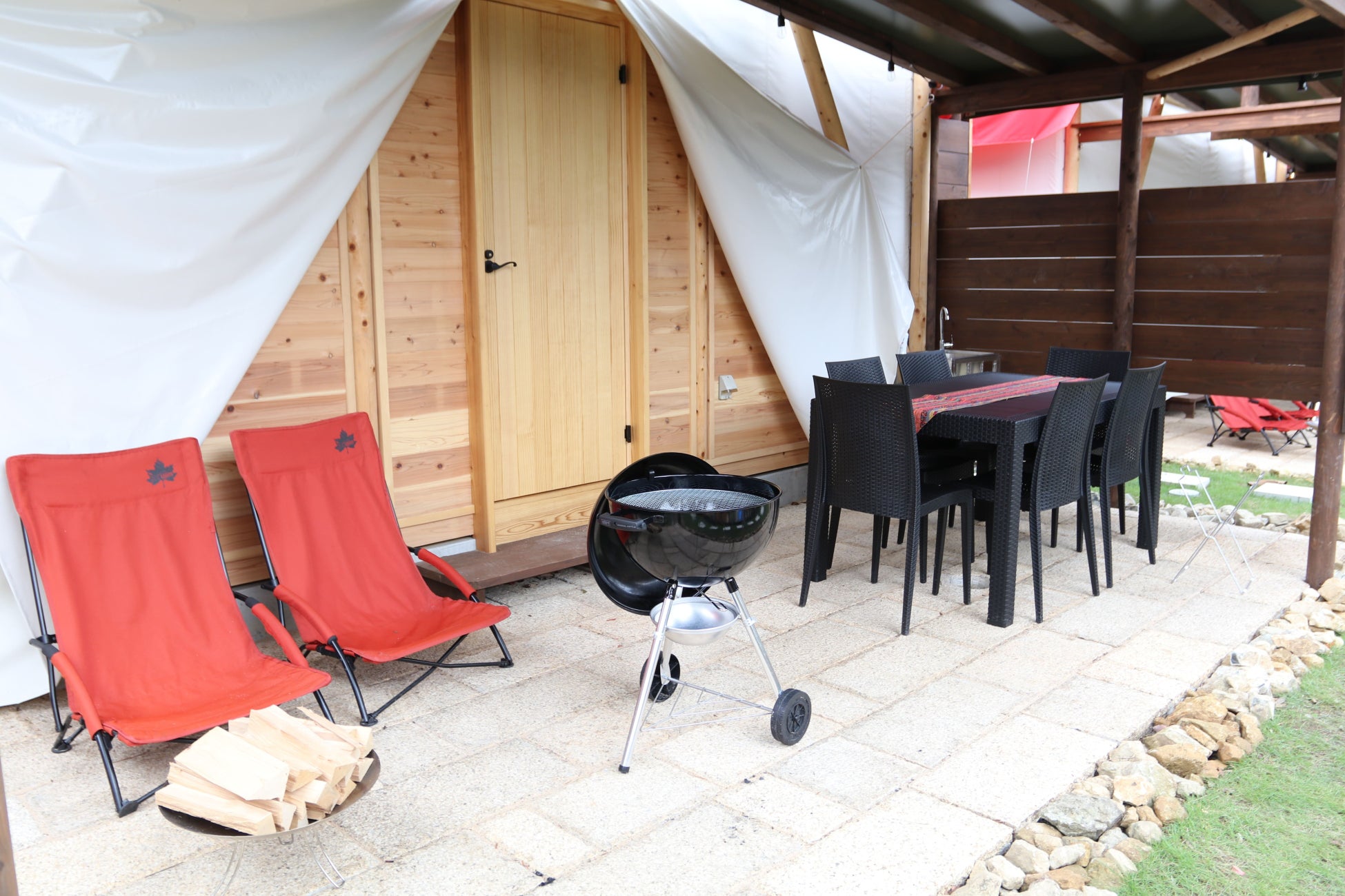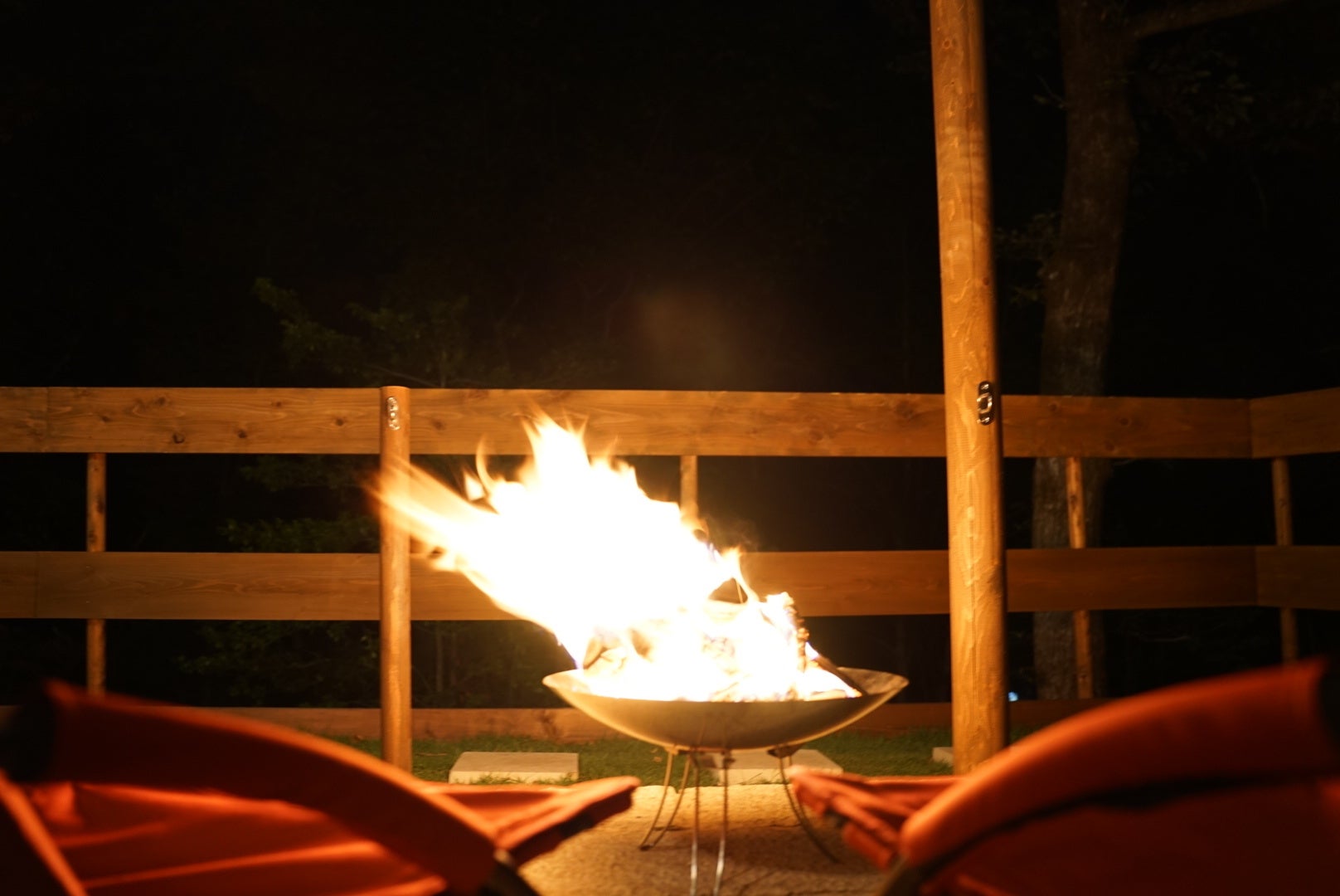 グランピング棟にはそれぞれ焚火やBBQが出来るスペースを完備しています。