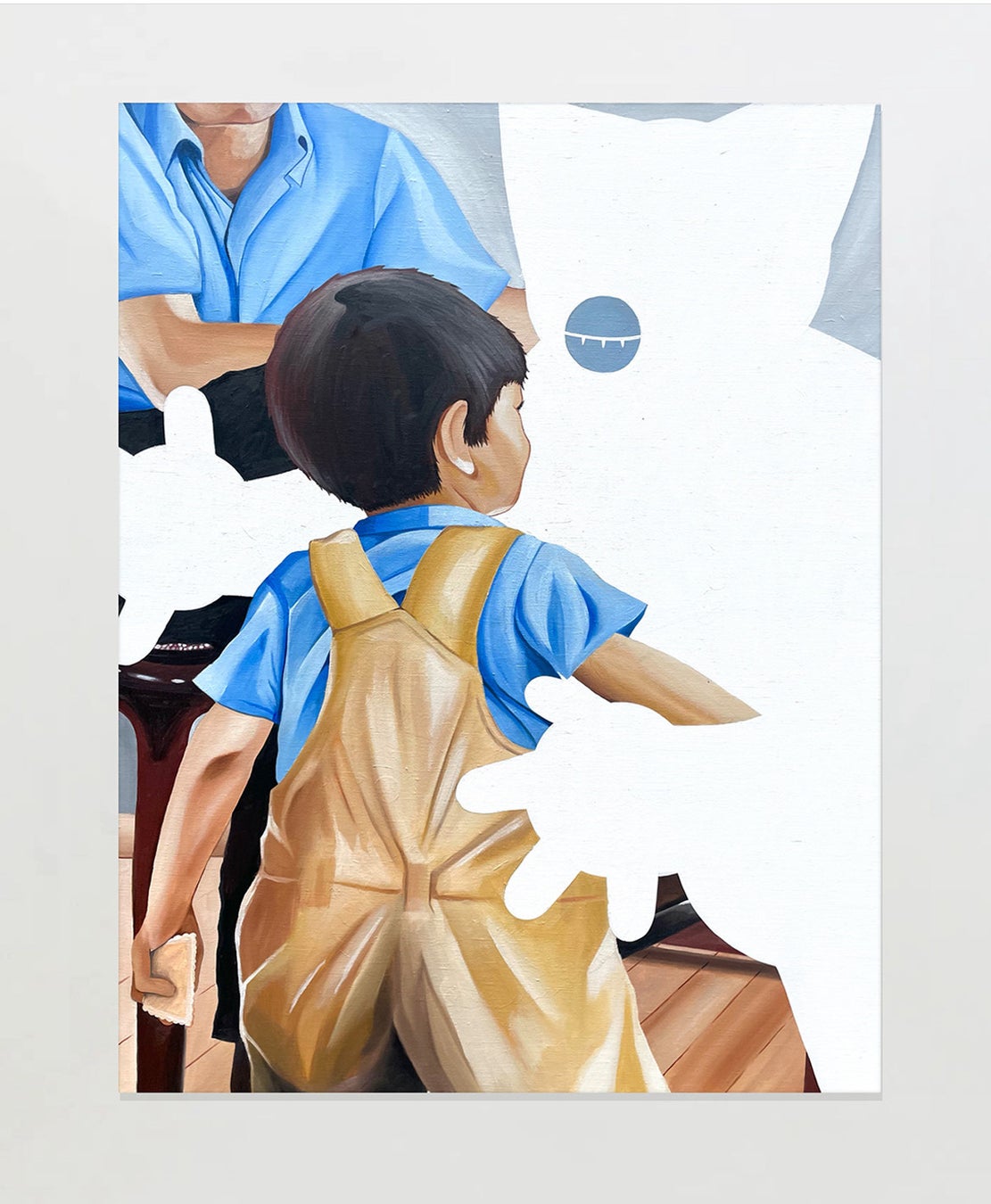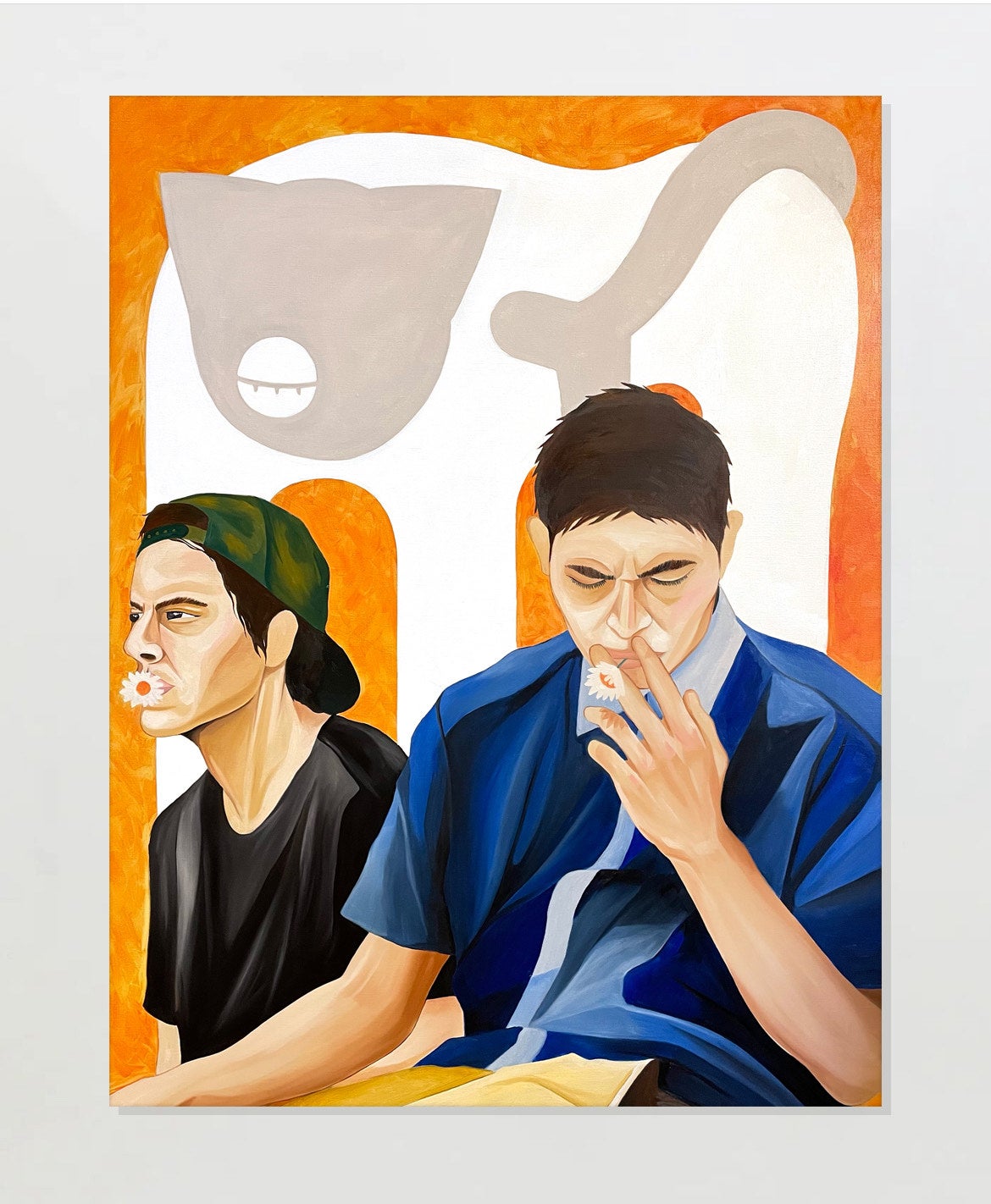 1998年⽣まれのビクターは、21歳で初めて東京に移住してから⽇本特有の⽂化を⾃⾝の作品に取り込み、フランスと⽇本のカルチャーを融合させたユニークな作品を⽣み出しています。カラフルで鮮やかな⾊使いとシンプルな構図を駆使することで、ポップで鮮やかで、エネルギーに満ち溢れた雰囲気を作り出します。⽣き⽣きとした⽇常の瞬間を描き、「思い出」が作品において重要な役割を果たします。幼少期の思い出を象徴し、ビクター⾃⾝とも⾔える猫を絵画に登場させることで、⽂化が衝突する際に⽣じる緊張感を、安らぎや安⼼感、ユーモアに変換し、個人的な出来事を普遍的な感覚に昇華します。
