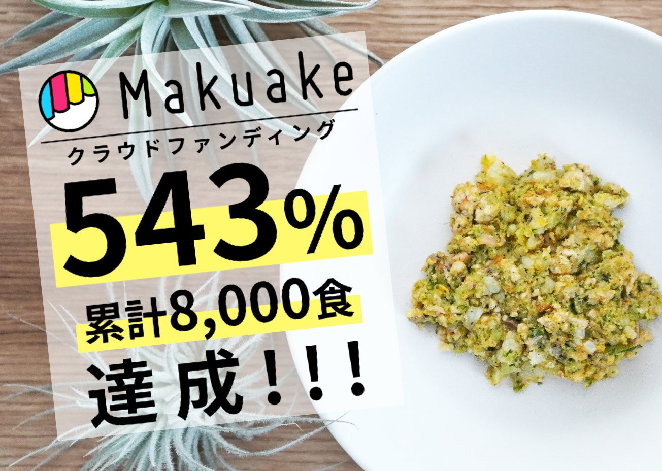 また、onedog Deliは昨年11月よりクラウドファンディングサイトMakuakeにて先行予約販売を実施し、累計8,706食(売上108万円)のご注文をいただき目標金額の543%を達成いたしました。