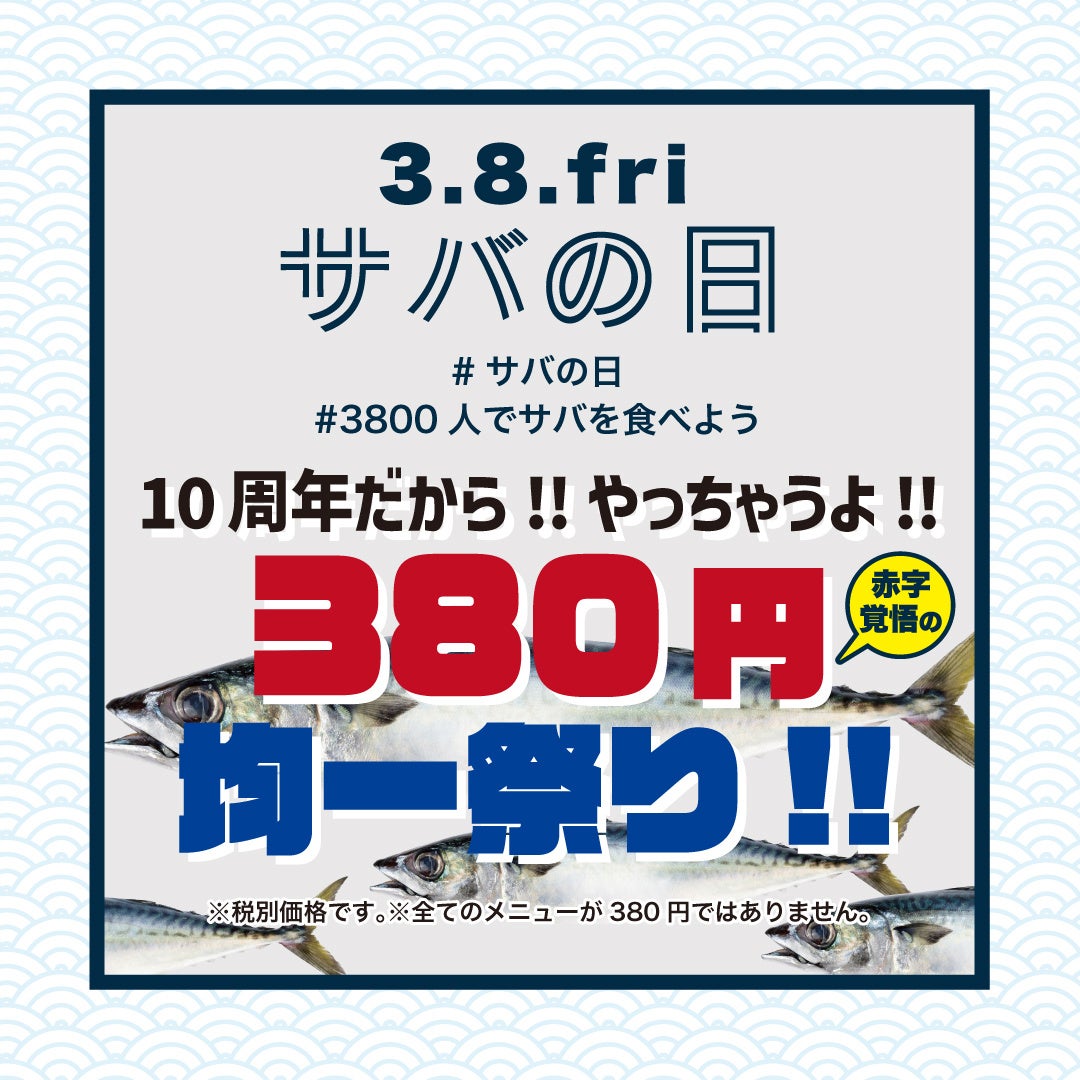 サバの日だから!!サバプライス!! 380円均一メニューをご用意!!