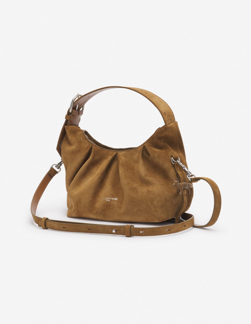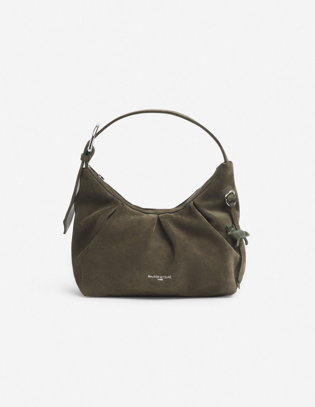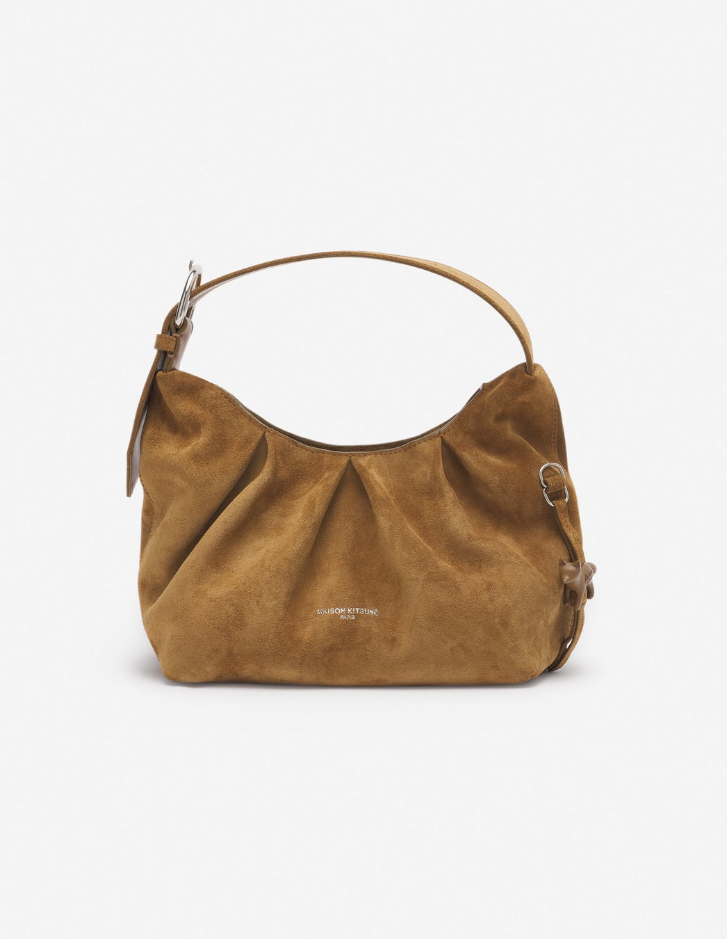 今回発売するのは、イタリア製スウェード素材を使用した、ダイナミックなカーブが特徴的な新型バッグ。センター部分に施されたプリーツ加工がポイントです。バッグ本体と同系色の立体的なFOXチャームが付属し、遊び心をプラスしています。