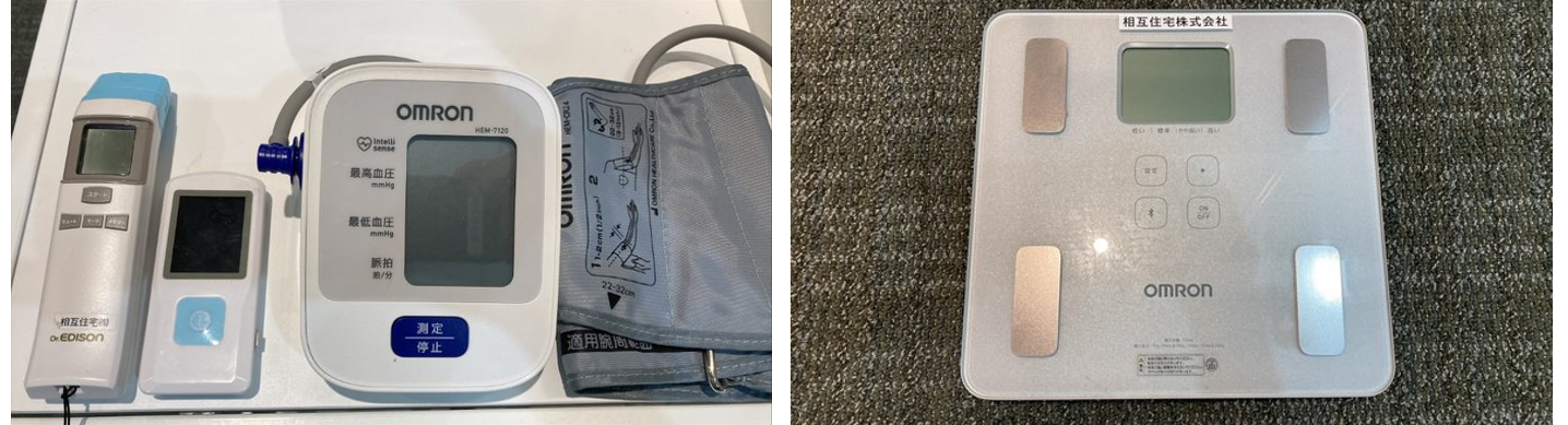 →体組成計・血圧計・心電計・体温計を本社及び事業所に設置しております。