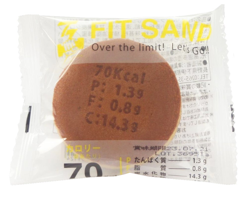 アスリートは1日の摂取カロリーや栄養成分も気にする場合が多く、パッと見て分かるようどら焼きの皮に栄養成分を焼印。栄養成分が焼印されているどら焼きは「FITSAND」だけです。(当社調べ)
