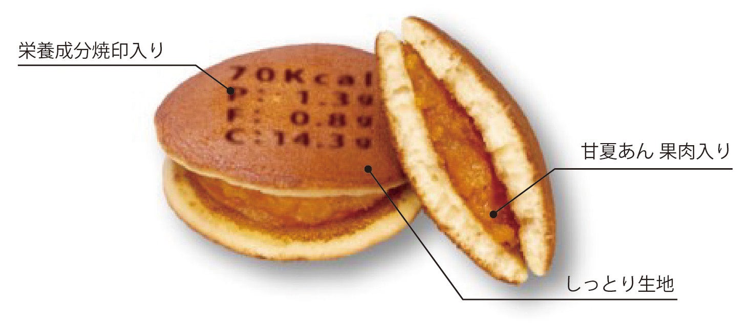 どら焼きの皮に、カロリー・P(タンパク質)・F(脂質)・C(炭水化物)を焼印!