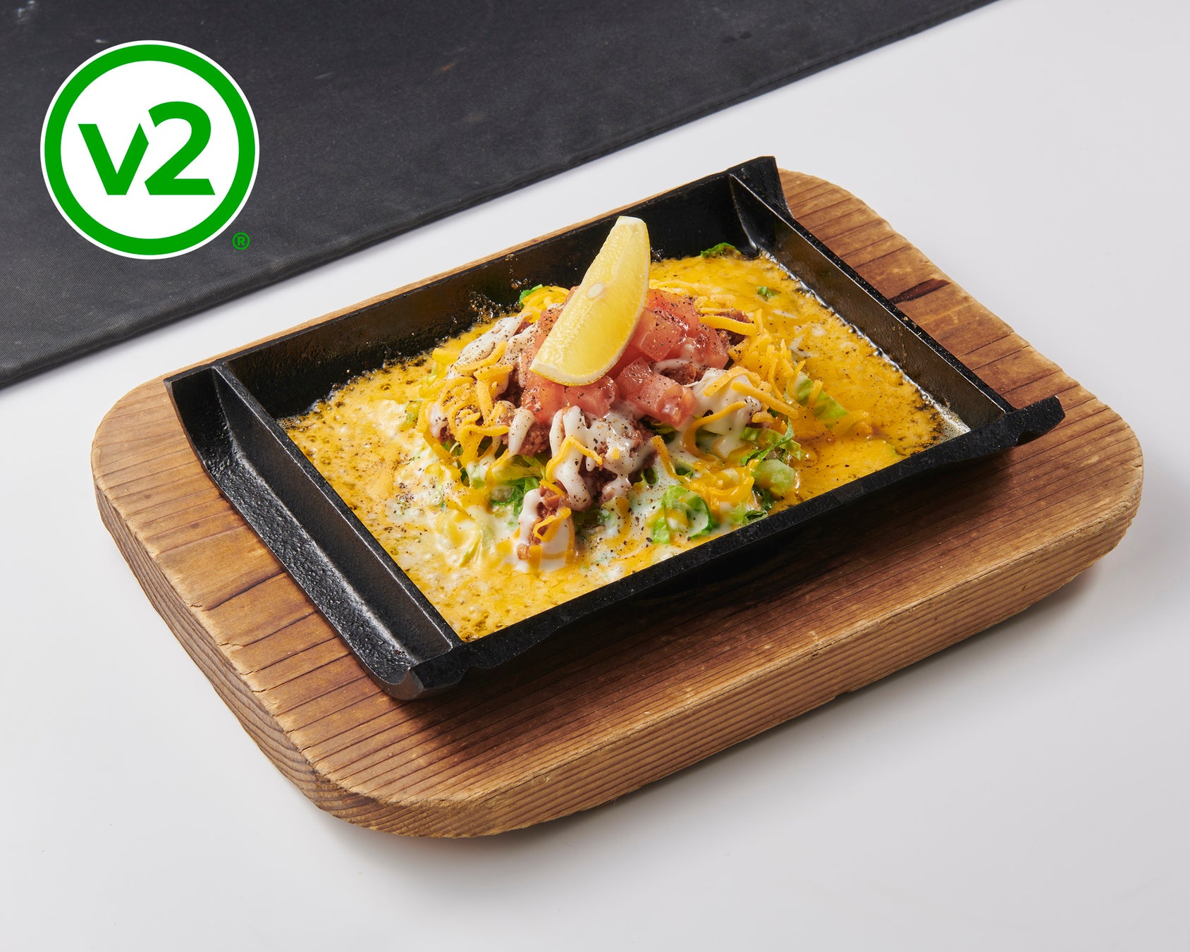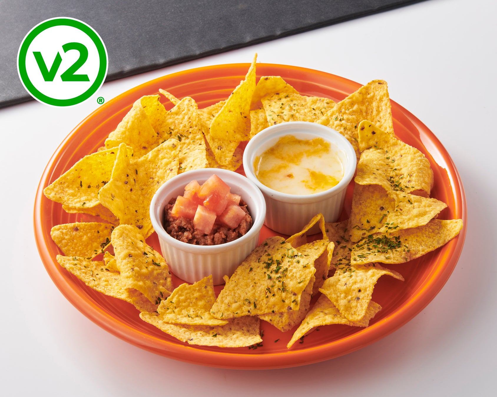 スパイスの利いたv2mince(ミンチ)とソフトなトルティーヤで手軽なおつまみとして楽しめる1品です。実はプラントベースミートだった!という驚きを体感いただけます。