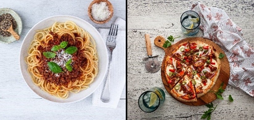 肉の風味を存分に楽しめるv2mince(v2ミンチ)ビーフタイプは、通常の牛ひき肉と同様に調理できるように開発された製品です。ミートソース、餃子、牛そぼろなど、通常の牛ひき肉料理の材料として幅広くご使用できます。