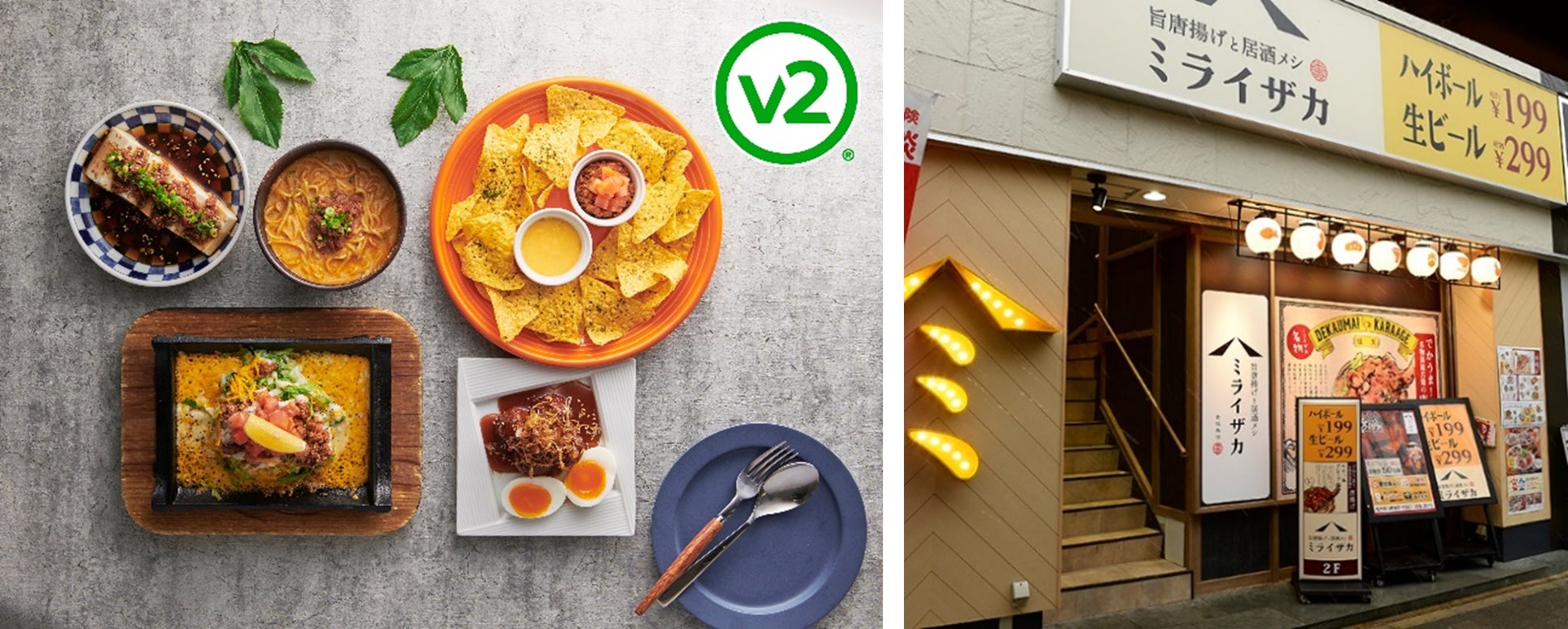 そしてこの度、2023年3月9日(木)~5月10日(水)まで、「CHANGE ONE MEAL」キャンペーンとして、「ミライザカ」で「CHANGE ONE MEAL」フェアを開催します。v2foodがトレンド感溢れるメニューとなって登場します。