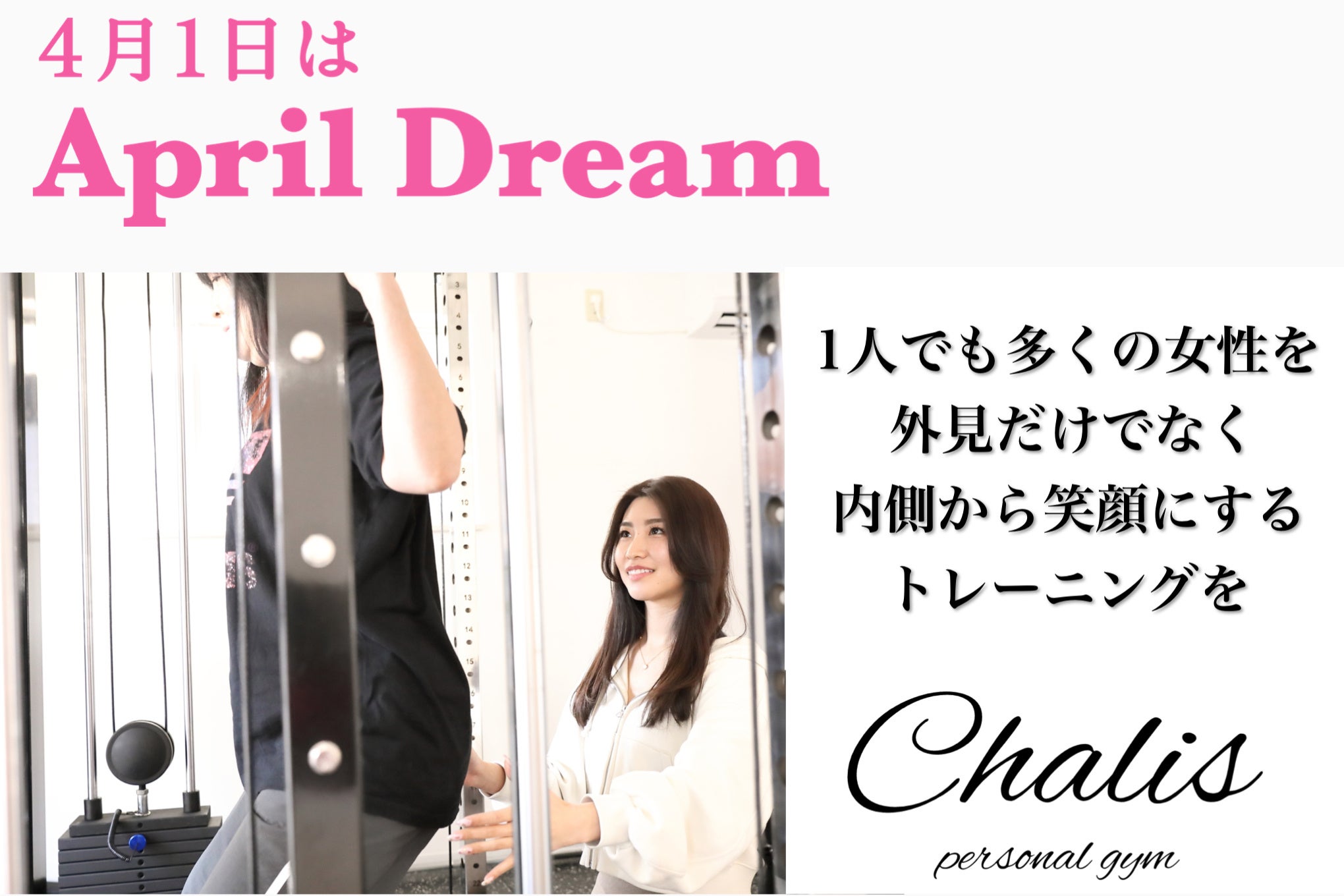当ジムは、4月1日を夢を発信する日にしようとするApril Dreamに賛同しています。このプレスリリースはカリスジムの夢です。
