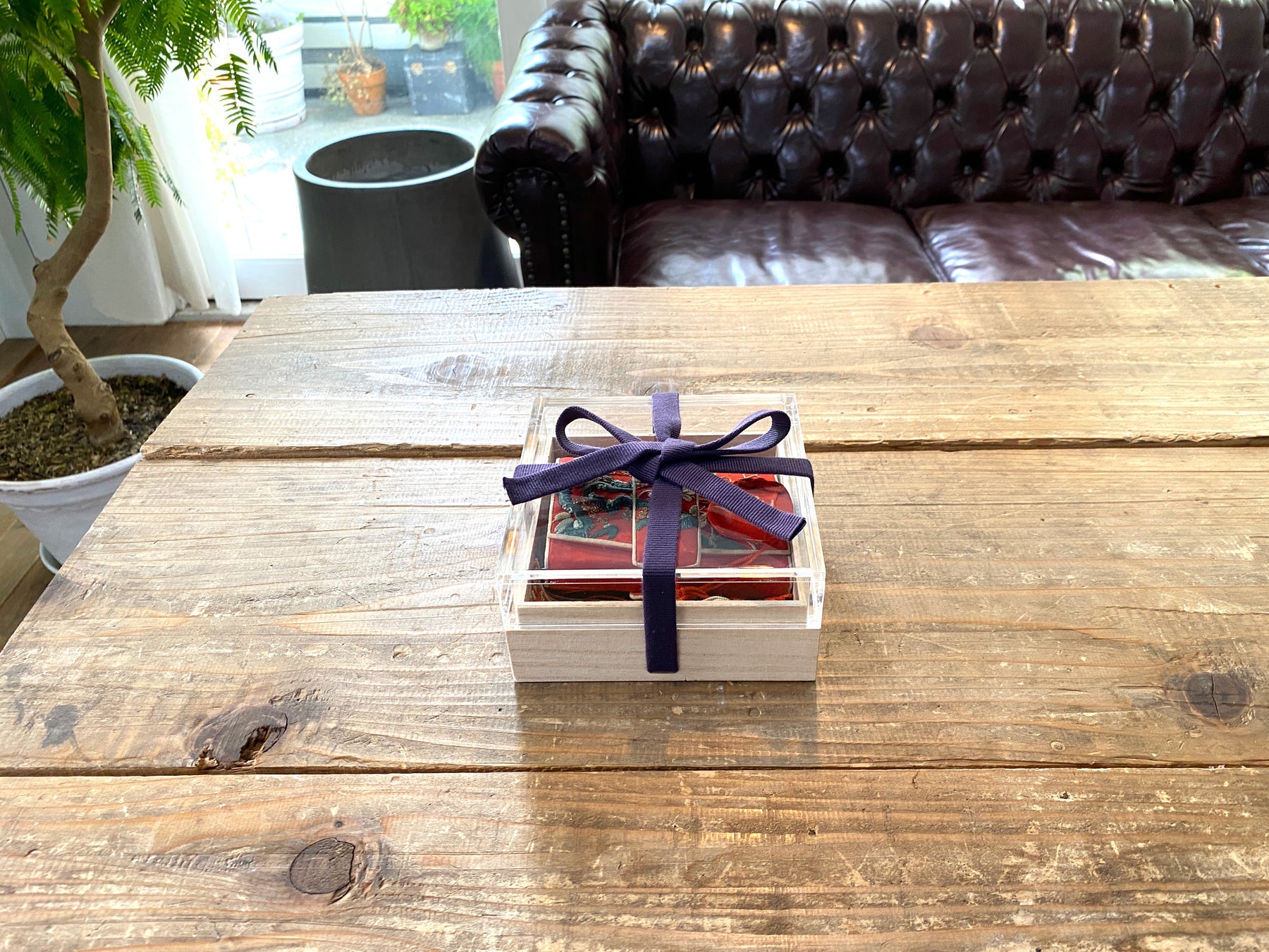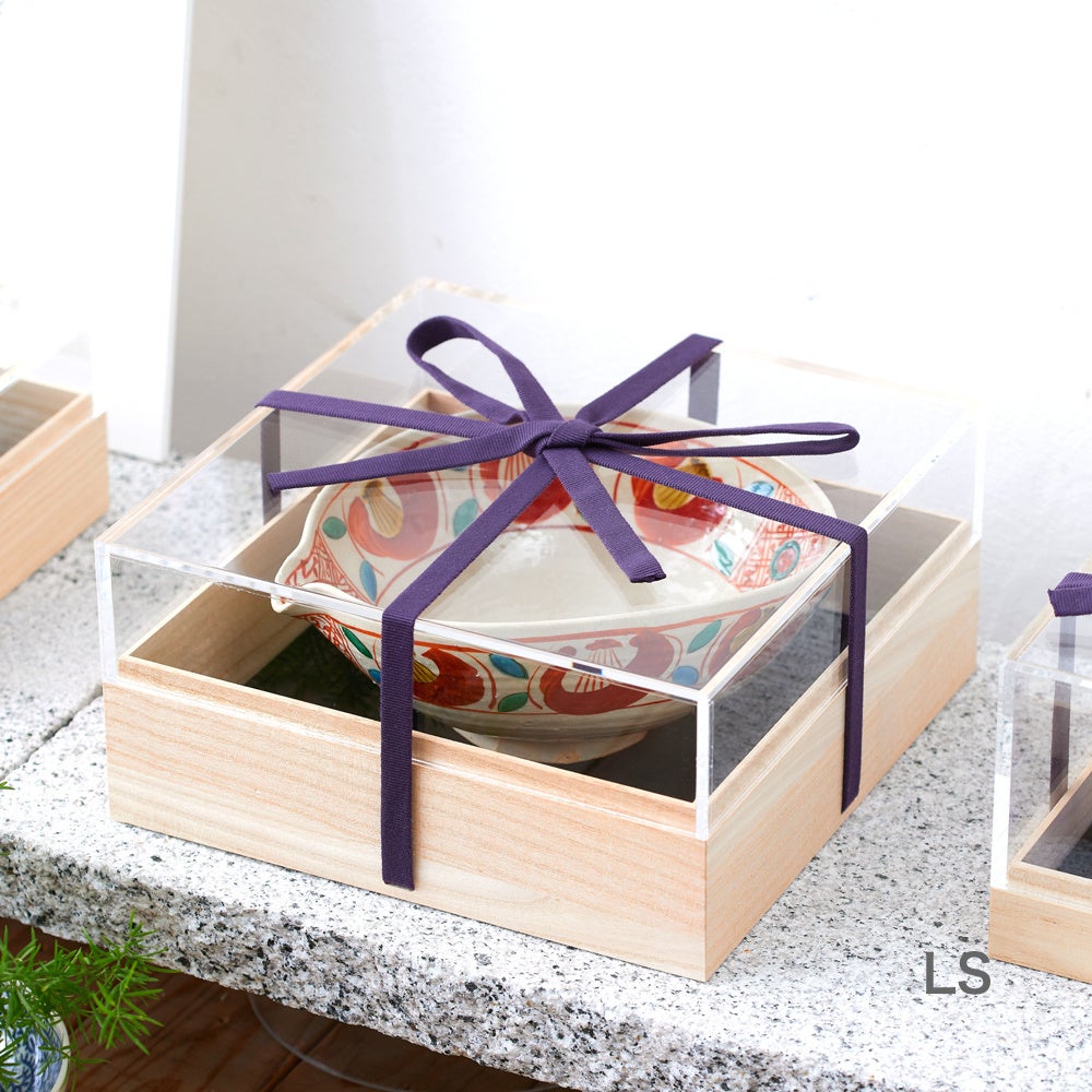 アクリルの持つ透明感に、桐箱の持つ伝統的な風合いをプラス