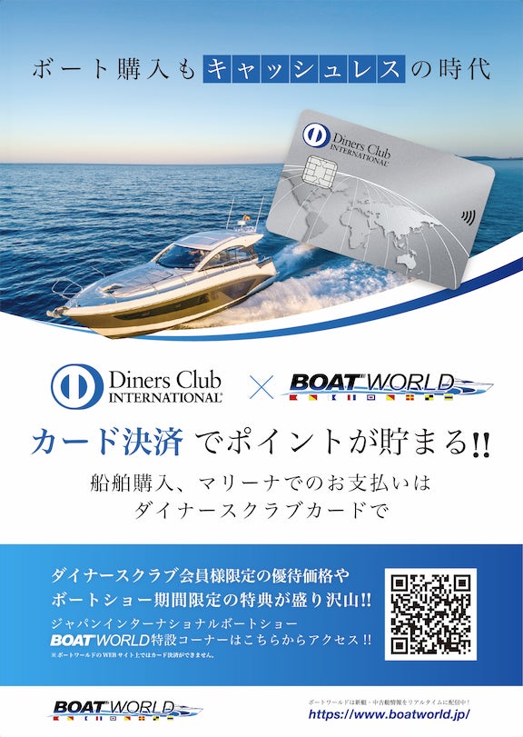 この度の「日本ボート・オブ・ザ・イヤー ダイナースクラブ賞」を記念し、ボートワールドでは2024年3月21日(木)〜4月30日(火)までジャパンインターナショナルボートショー期間限定プライスやボートショー期間限定の特典が盛り沢山の特設コーナーを開設いたします。(https://www.boatworld.jp/boat/stockList/event.html)