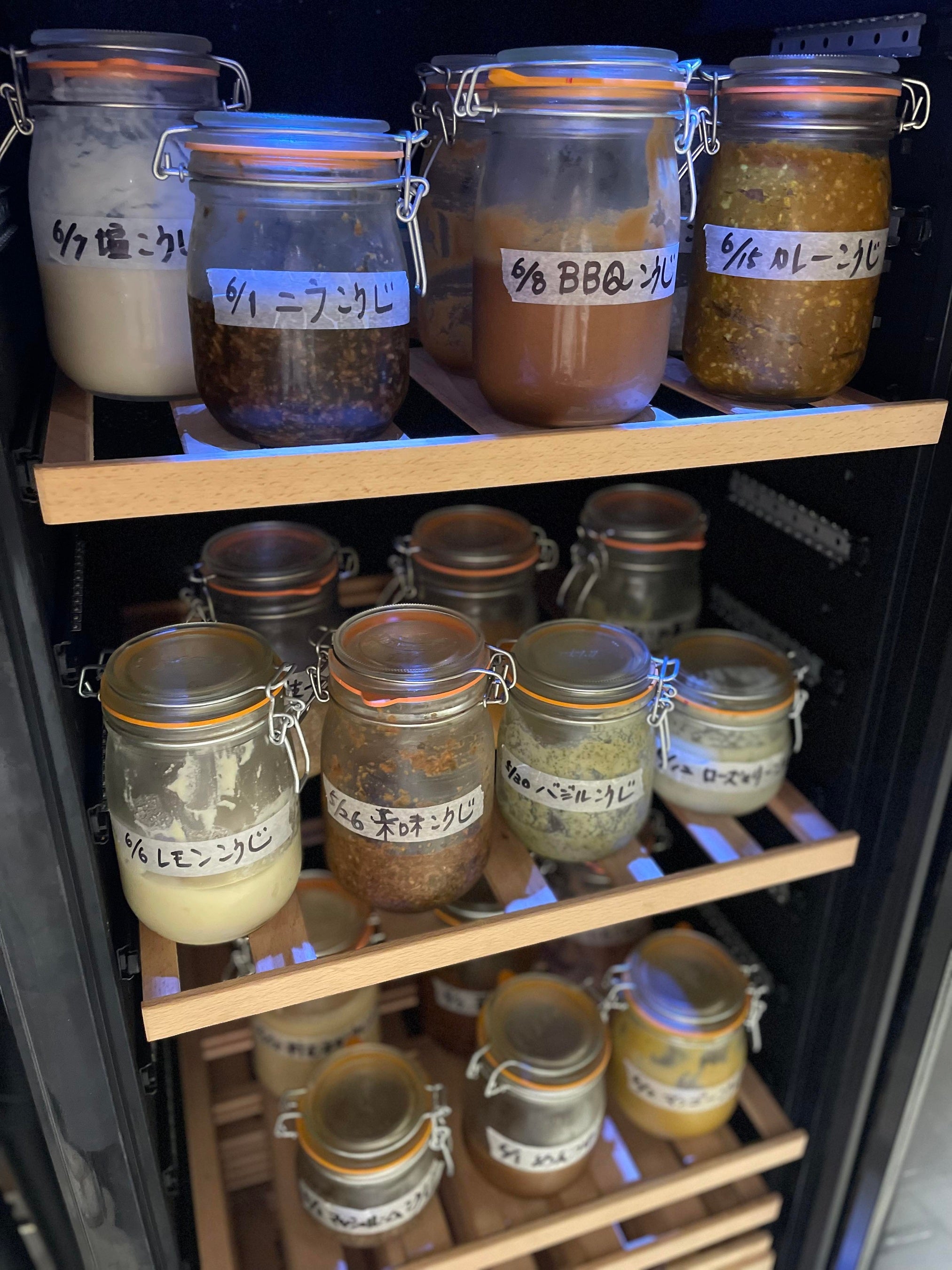 さん六本木店でお出しする料理には、身体を整える「麹」をメインに使っています。富山県から仕入れた生麴から作った自家製麹の種類は20種類以上!!食材事に使い分けることはもちろん、お客様とのコミュニケーションの中で絶妙に切り替えて、できる限りお客様の好みに合うように心掛けております。