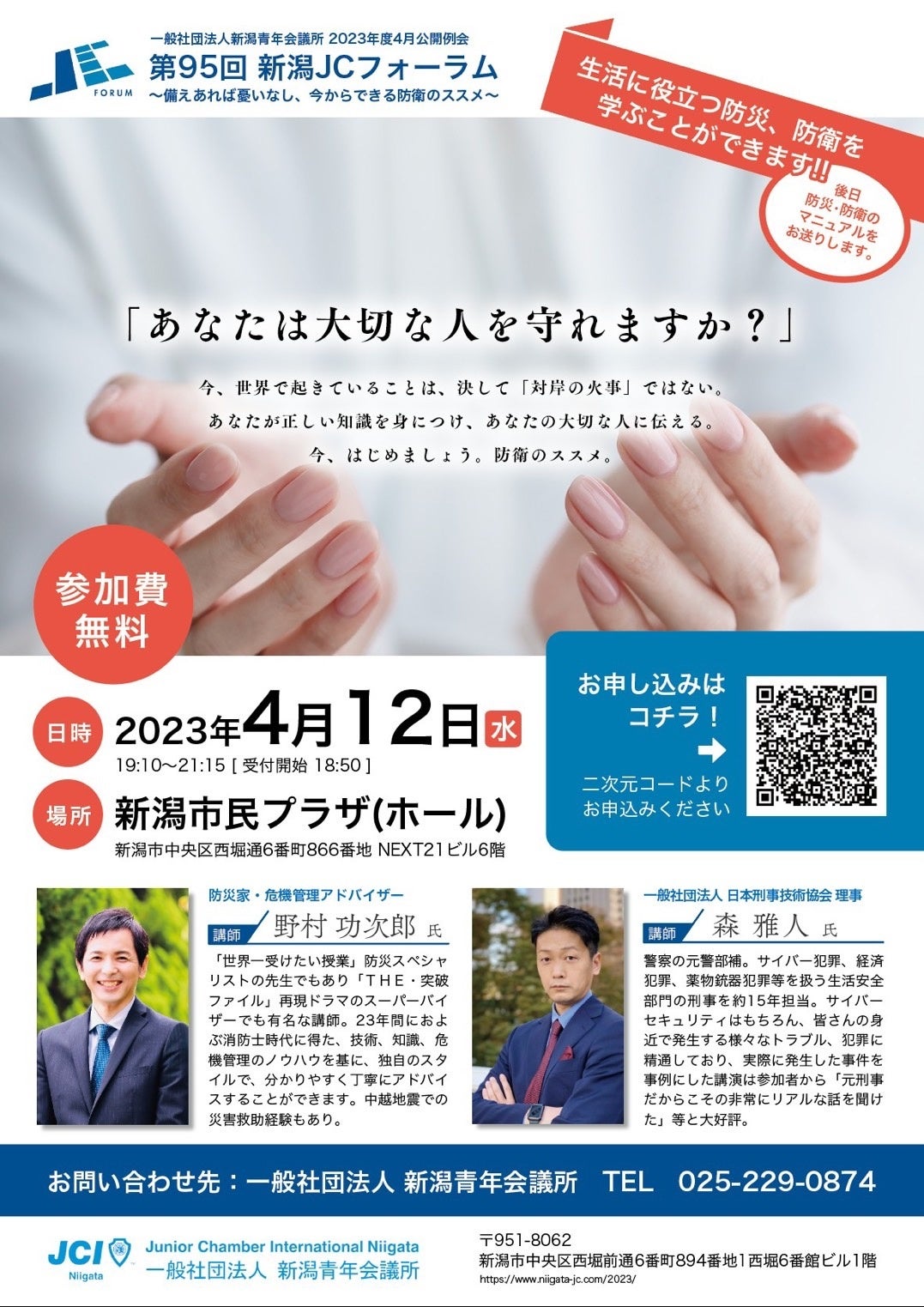 一般社団法人新潟青年会議所 4月公開例会 第95回JCフォーラム ~備えあれば憂いなし、今からできる防衛のススメ~