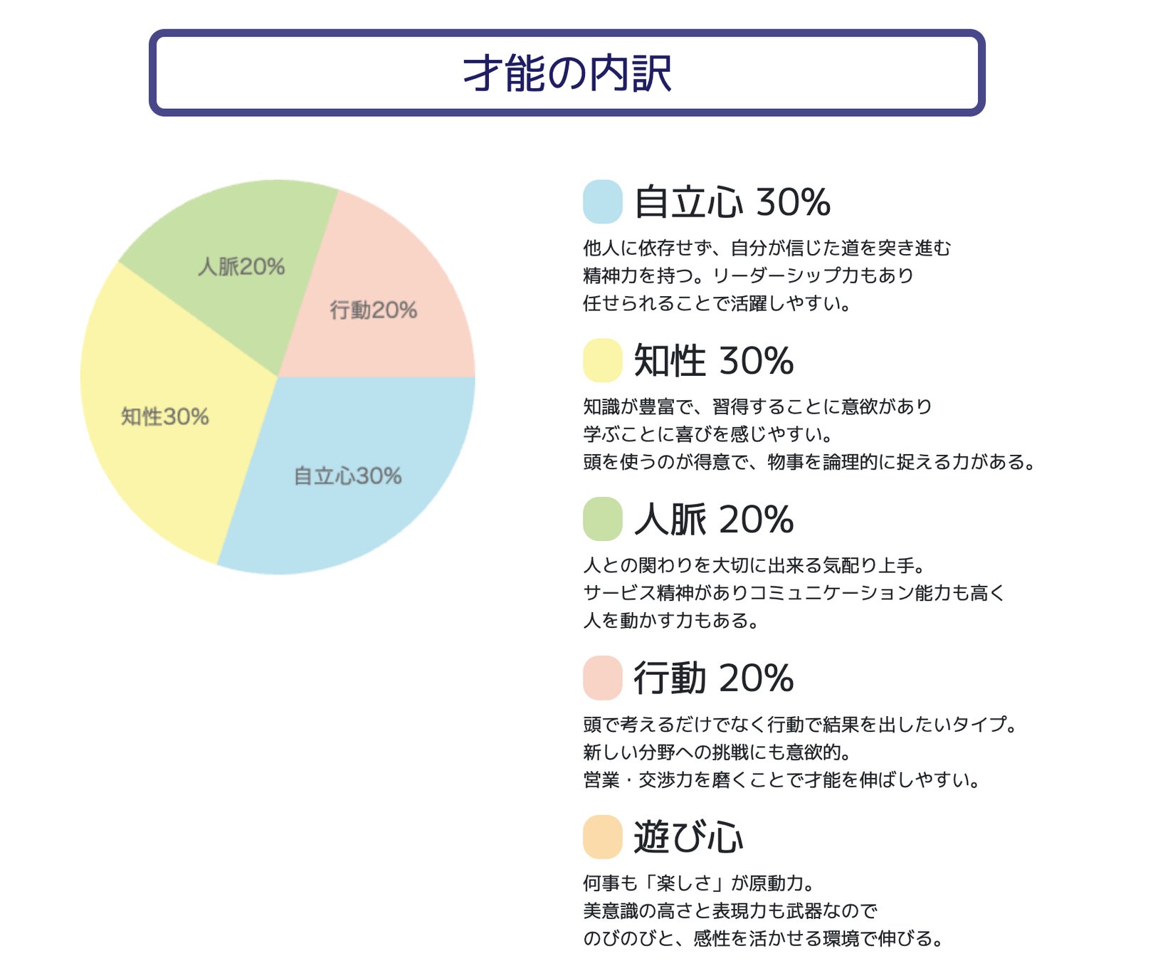 など、生まれ持った「才能」「個性」「どんな言葉がかけで動きやすくなるか」がわかります。