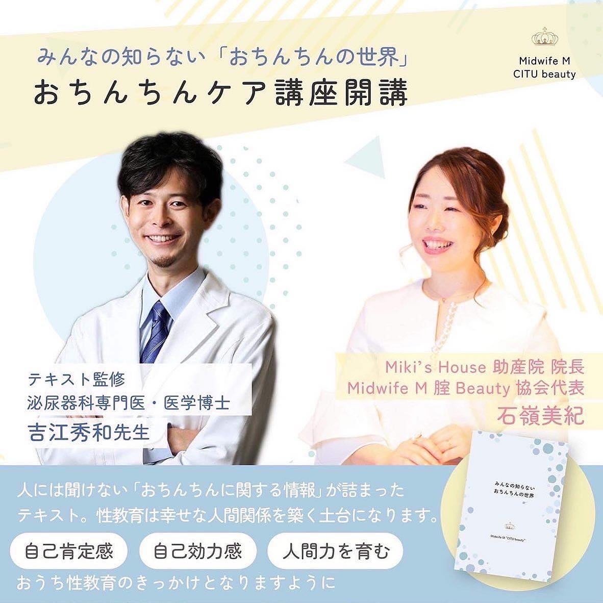 2021年にMidwife M 腟ビューティー協会を設立。“全ての世代に、泌尿生殖器ケアを通して幸せになってもらいたい”という信念のもと、「フェムケア」「おちんちんケア」「思春期性教育」をテーマとした教育を展開中。各種講座の開催や教育現場への指導のほか、講師の育成にも力を入れており、50名を越える講師を輩出。