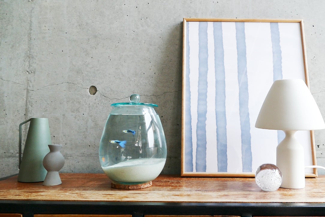 当初、懸念していた制作も問題ありませんでした。水槽のかっちりした形から手吹きガラス特有のコロンとした丸みのある形に生まれ変わりました。