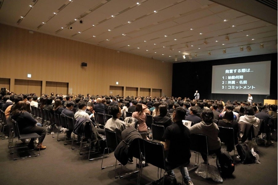 イベントの第一部では、WiL松本氏のファシリテーションの元、経産省石井氏から開会の挨拶として、スタートアップ育成5か年計画でのイノベーション人材支援の強化方針と始動が担う役割について共有し、集まったアルムナイを激励しました。続いて、WiL伊佐山氏がこれまでの始動の活動概要と成果を振り返り、今後の始動コミュニティへの期待について語りました。その後、幹事企画のコンテンツとして、始動の未来について検討するディスカッションを参加者全員で実施しました。また会場内では、PRも兼ねて40社ほどがパネルを展示する試みを行い、プログラム参加後からの成長の軌跡について共有。各自の取り組みに関して質問や意見を出しあい、相互に学びを深めました。最後のコンテンツでは、30秒で自らの「DO」について共有するコミットメントタイムを設け、参加者は次々と自らのミッションに基づいたコミットメントを発表し、会場は熱気に包まれました。