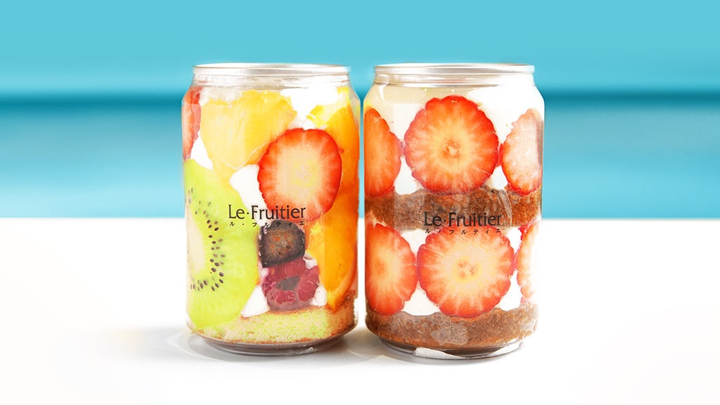 こだわりの生クリームをたっぷり使用し、季節ごとに変わる旬のフルーツを贅沢に詰め込んだ色鮮やかなショートケーキを缶の中に詰め込んだLe・Fruitier特製缶ケーキ(各900円)。