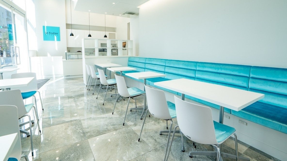 清潔感ある白を基調とした店内では、色鮮やかなフルーツパフェやスイーツを一層引き立てます。カフェ利用はもちろん、軽食やランチ、ディナーのお食事利用もできる開放的でおしゃれな店内は、お子様が座りやすいソファテーブル席もあり、お子様連れや女子会などにも最適です。Wi-Fiや電源も完備しているので、外出先での充電やちょっとしたPC作業なども可能です。