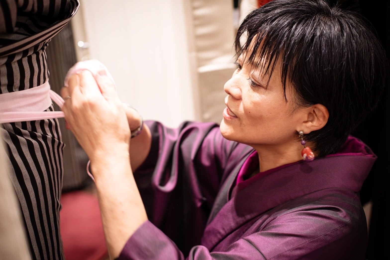 ミィズム・ディレクターのKUMIKO ONOが着付けデモンストレーションを致します。