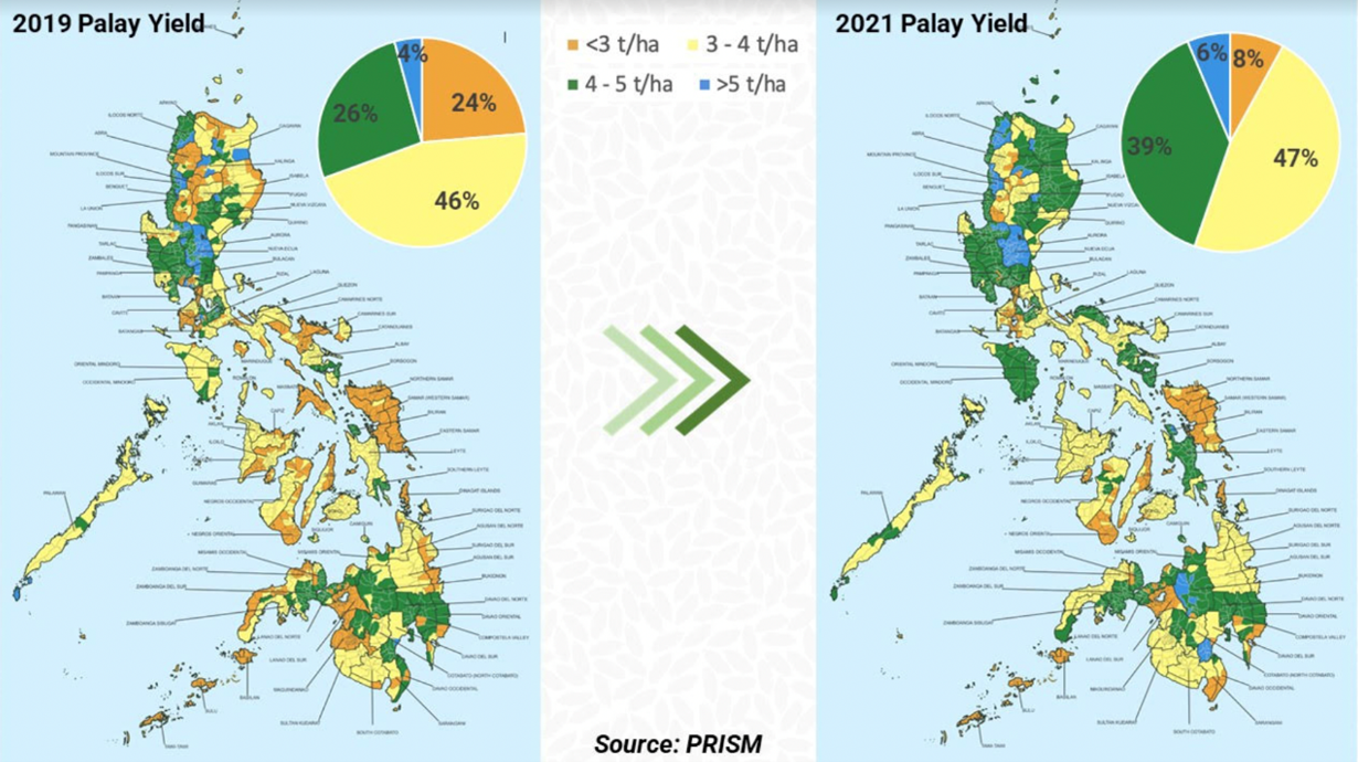 ○フィリピンの稲作栽培におけるhaあたりの収穫量の変遷