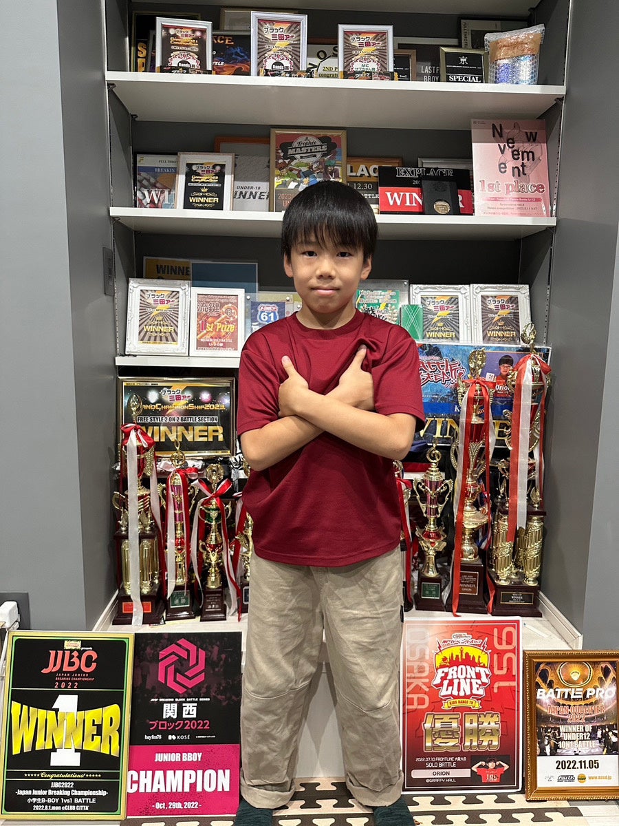 僕は、ブレイクダンスの中でもアクロバティックな技を繰り広げる「パワームーブ」を得意としています。でもふだんは、算数ドリルや漢字ドリルの宿題に追われる普通の小学6年生です(笑)。そんな僕がバトルにのめり込むのは、技の数秒で場の雰囲気を一瞬にして変えられるパワームーブの魅力が原動力になっているからです。今後は、海外のいろいろな大会にチャレンジして、優勝していきたいです。