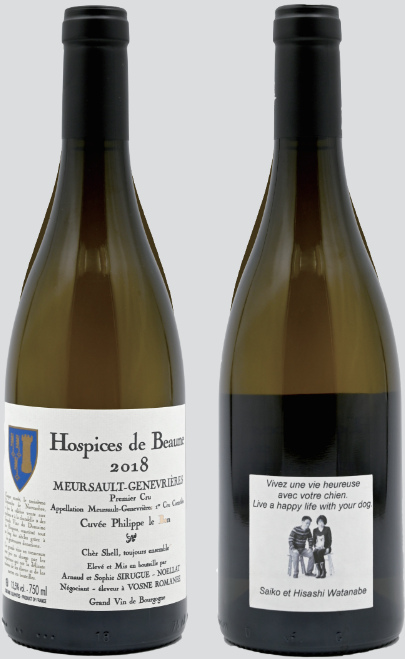 今回出品するワインは、2018 年 11 月にオスピス・ド・ボーヌで開催されたワインオークションで一樽を落札したムルソーです。同じ年の 8 月に 17 歳 4 ヶ月で亡くなった愛犬への愛情と感謝の気持ちを形に残し、ワンコ達への恩返しとして、保護犬活動や動物愛護活動を支援したいとの思いから落札したものです。愛犬の名前はシェル、白・茶のパーティー柄で、とても愛情深く、気高く、愛らしいロングコートチワワでした。シェルは、私たち夫婦に、たくさんの愛情と思い出と友人をプレゼントしてくれました。また、私たちが初めてワインを購入した東急百貨店本店のシニアソムリエ藤巻暁さんとのお付き合いを通じ、ワイン、なかでもブルゴーニュワインが大好きになり、多くのワインラバーとの交流を深めました。
