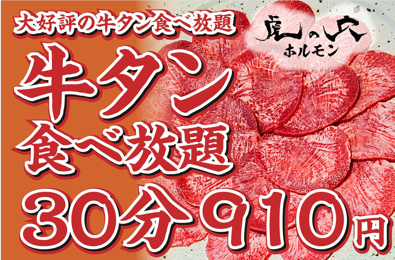 虎の穴ホルモンでは人気メニューのネギタン塩を、4月19日、20日を牛タンの日として、2日間限定のお得な食べ放題をご用意いたします。