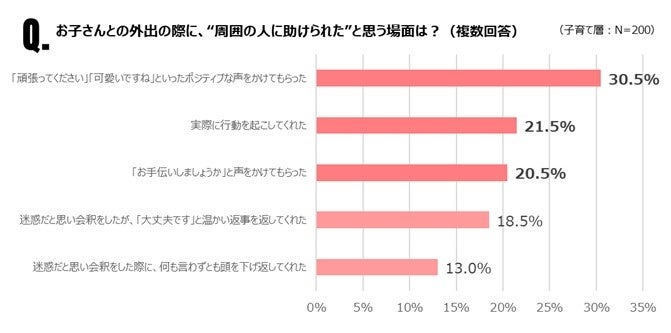 実際に、ママ・パパが“周囲の人に助けられた”と感じた場面は、