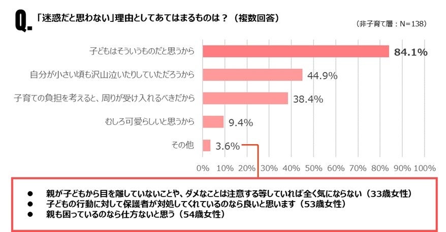 ② 非子育て層の約7割が子どもの行動について“迷惑だと思わない”、“受け入れたい”