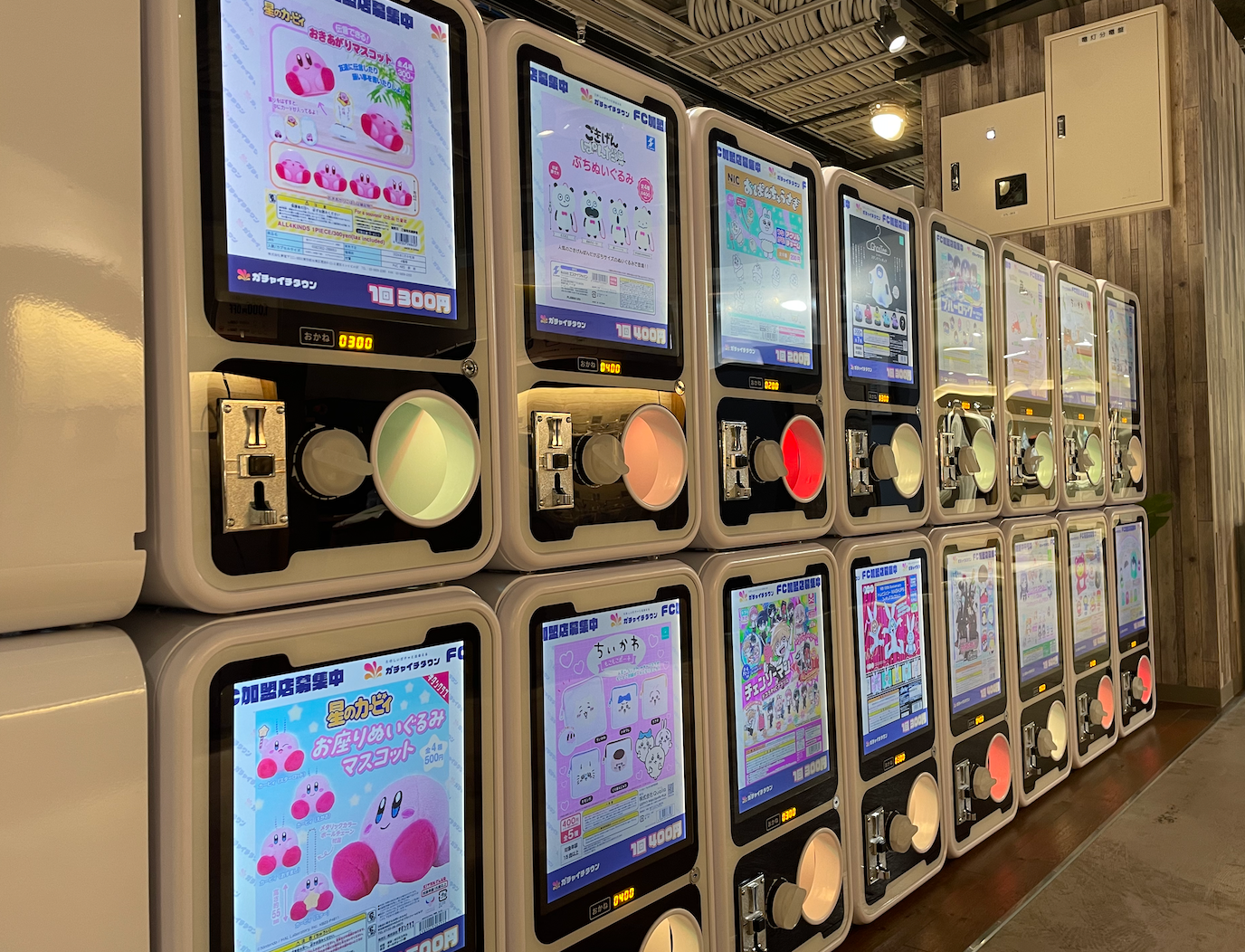 動画が流れる、キャッシュレス決済対応のガチャガチャ専門店