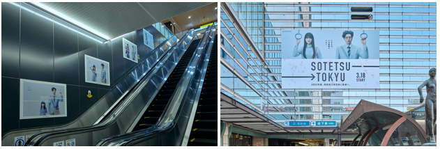また、相鉄20000系(主に東急東横線直通用車両)と21000系(主に東急目黒線直通用車両) では、『父と娘の風景』の世界観を再現したトレインジャック広告を展開。さらに、乗り入れ先の一部、相鉄線全駅、 JOINUSなどで屋外広告を掲出しています。