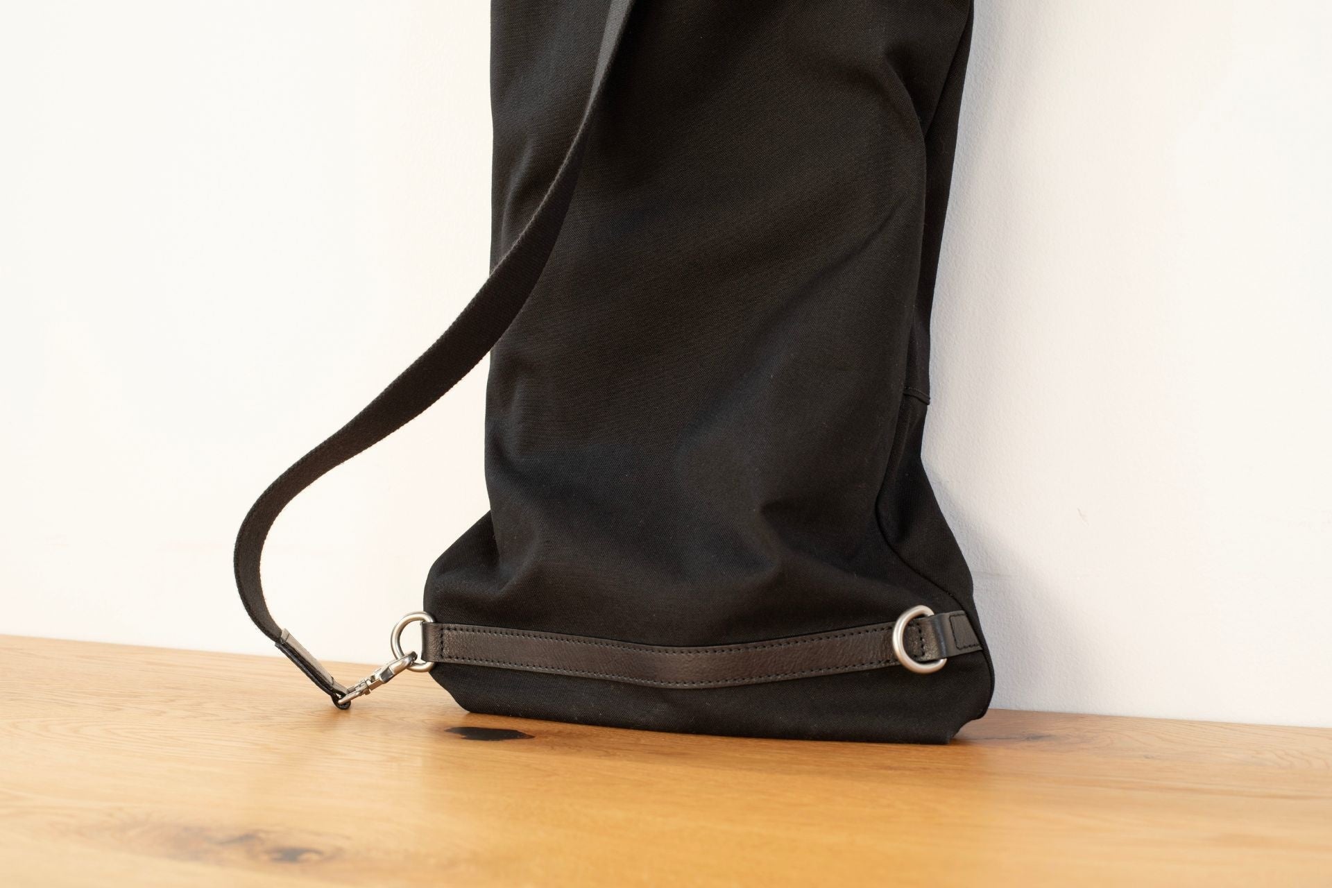 巷のスケボーバッグのほとんどはナイロン製。一方こちらはメイン素材に帆布を使いました。トートバッグでおなじみのタフな素材で、ナイロンに負けない耐久性の高さを秘めています。強さとしなやかさを兼ね備えた11号帆布を使ったことで、どこかミリタリーな気配も漂っています。岡山県でつくられる、高品質な「倉敷帆布」を採用しています。